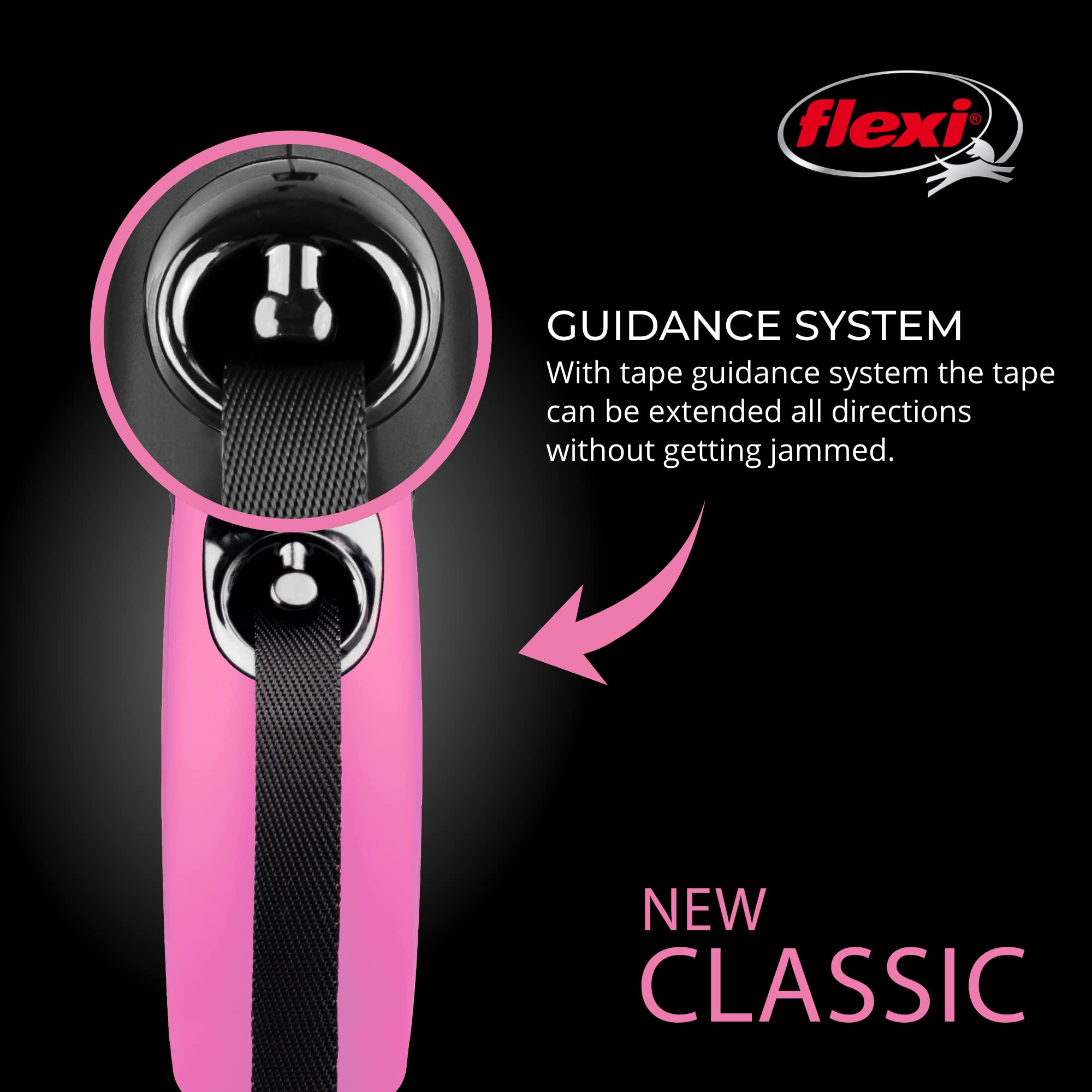 360° TAPE GUIDANCE SYSTEM: Enjoy seamless and controlled leash extension and retraction with the innovative flexi tape guidance system. This feature guarantees effortless leash handling, preventing tangles and giving your companion the freedom to move with ease.