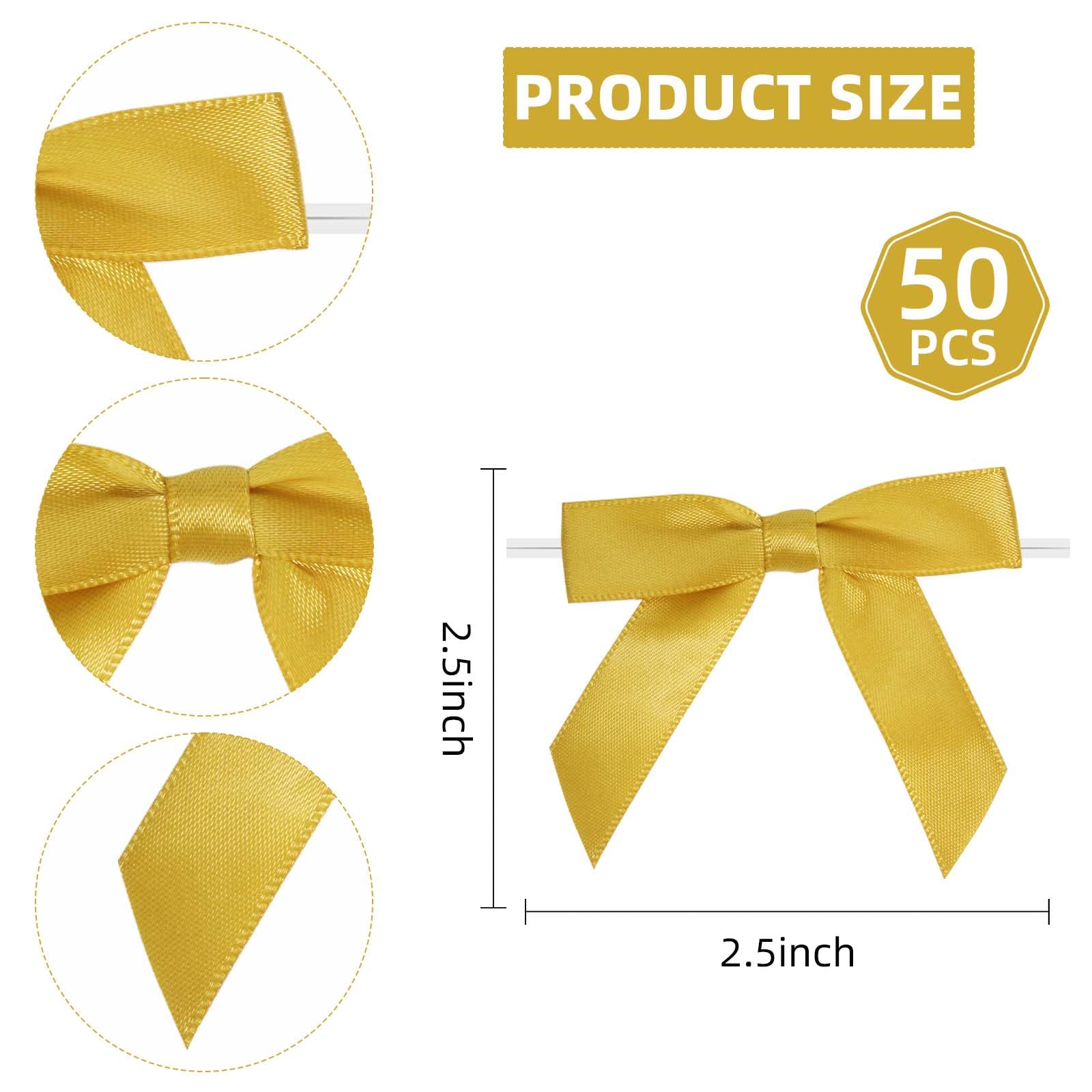 【 Bow Details 】 Twist tie bows measure approximately 2.5 x 2.5 inches.Made of High quality satin ribbon,This set will easily meet your various needs for decoration or DIY projects. Each bows is unique, please carefully look at its size before buying.