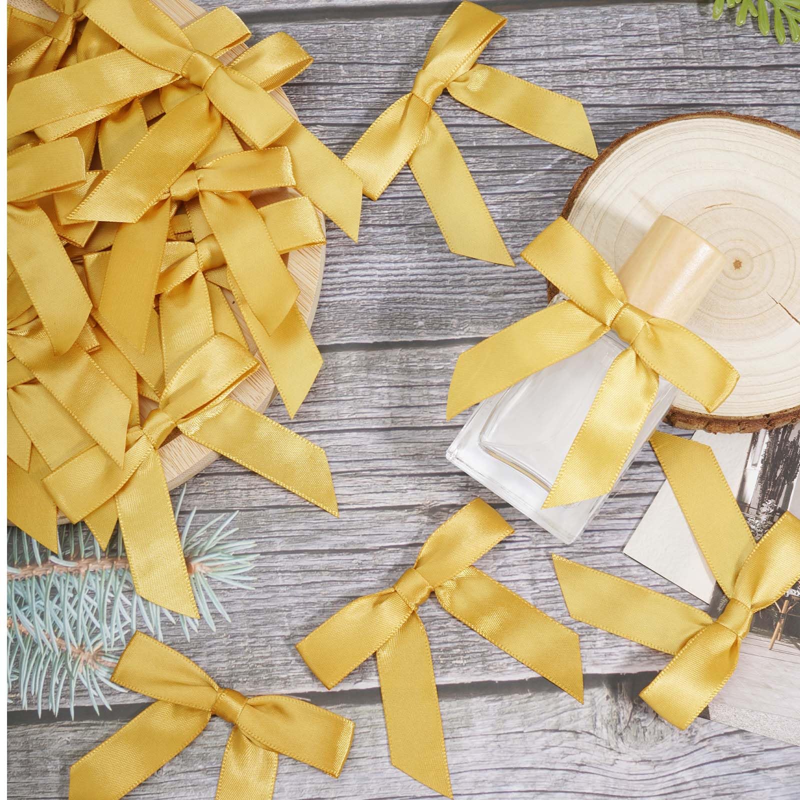 【 Package Content 】 You will receive 50 pieces greed satin bows with twist ties. Saving time from having to make the bows yourself.