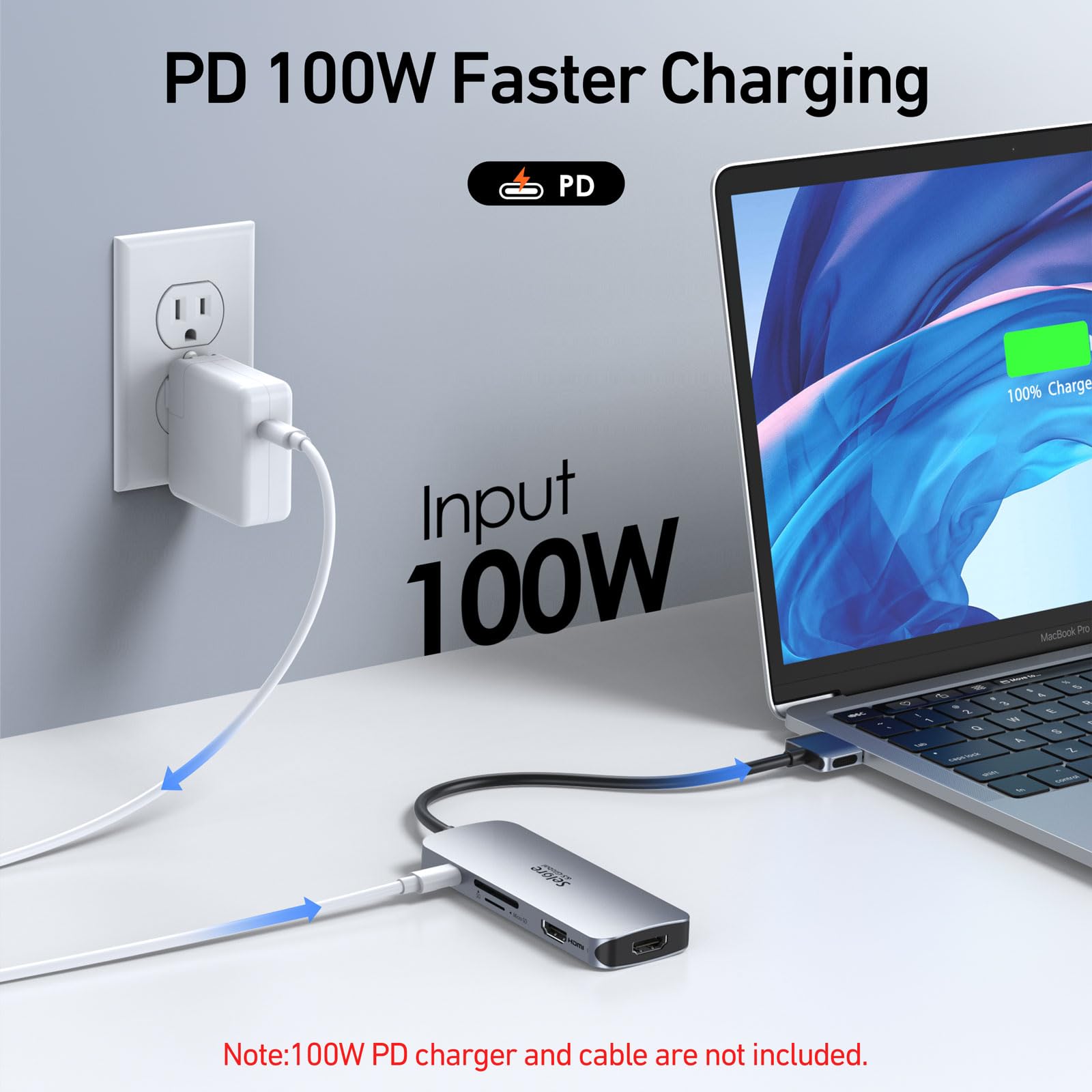 [8-in-2 USB-C Hub for MacBook Pro/Air] The USB-C adapter for MacBook is equipped with 2 HDMI, 1 USB-C, 2 USB-A, 100W PD, SD/TF card reader. It is the most convenient solution to expand the limited ports on your MacBook: you can transform 2 USB-C ports of your MacBook into 8 functional ports, suitable for home and office use for efficient work. Please note: The host laptop must support Thunderbolt or USB-C DP Alt Mode. Does NOT support the latest MacBook Neo models. Please check your device ports