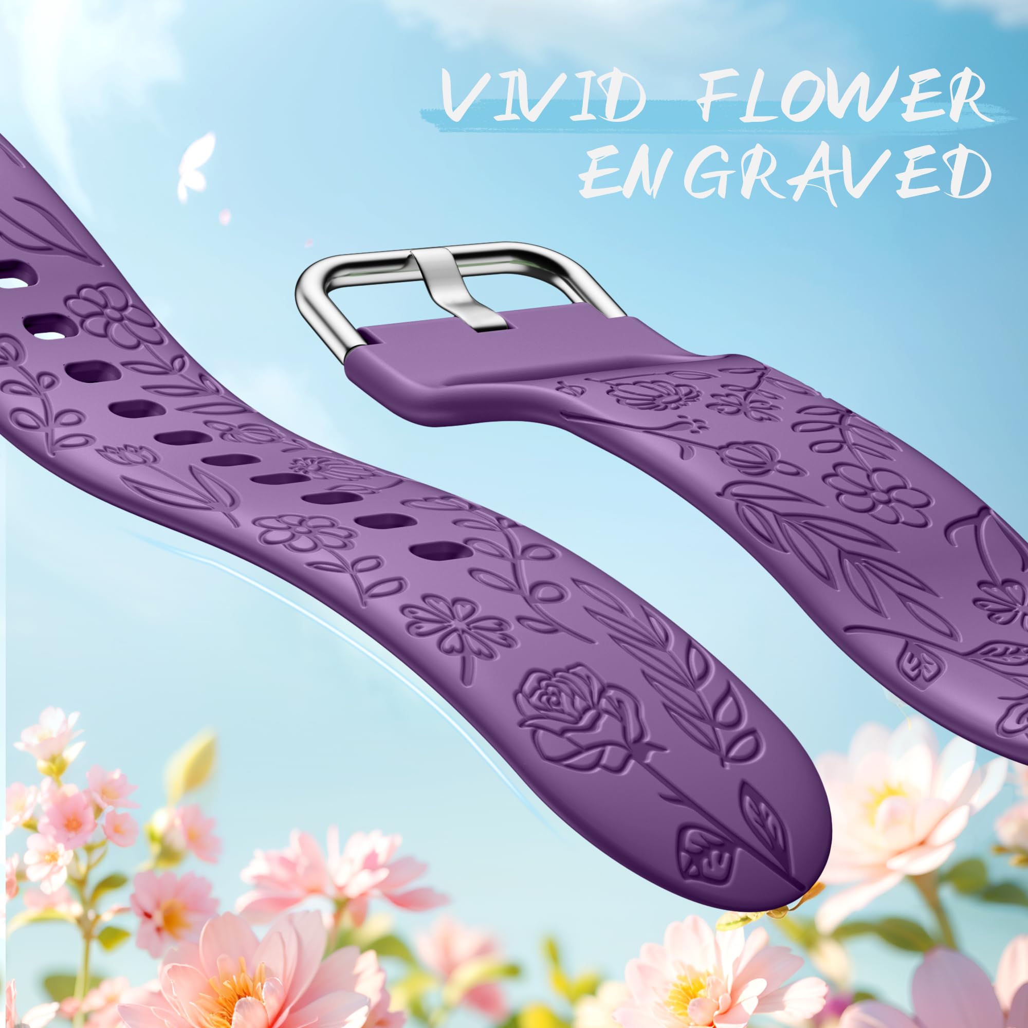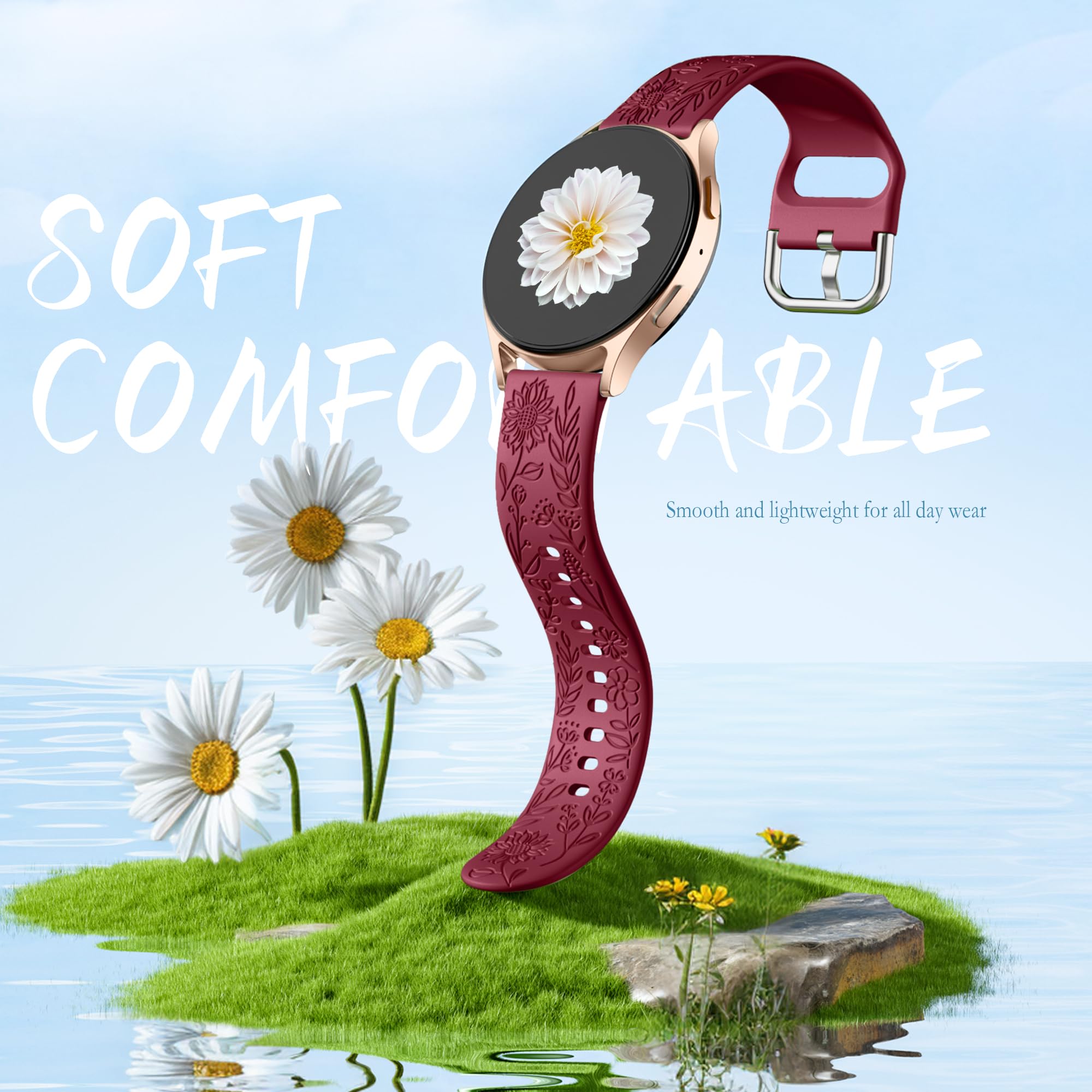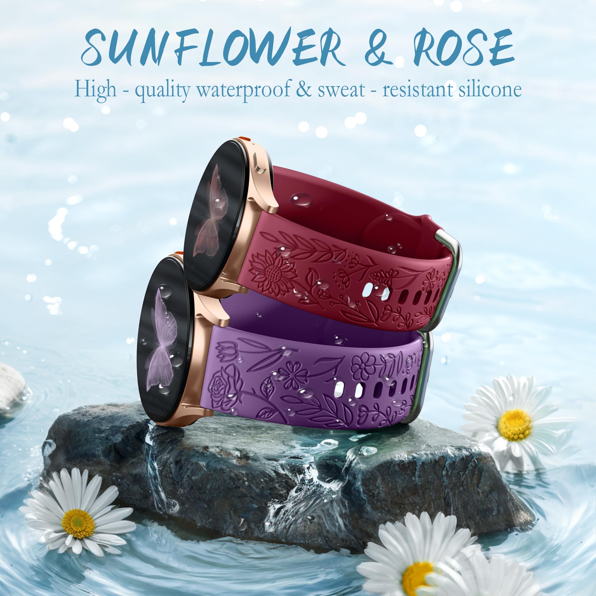 Cute Floral Engraved Design: The Galaxy Watch 7 Band features precision laser engraving technology, creating vivid and lifelike floral patterns that add 3D elegance and a luxurious tactile feel. Perfect for any occasion, pretty roses bring timeless sophistication for formal events, while vibrant sunflowers radiate youthful energy for casual wear. This stylish Samsung watch bands for women is a beautiful floral print that celebrates and love nature, adding a personal look to your daily outfit