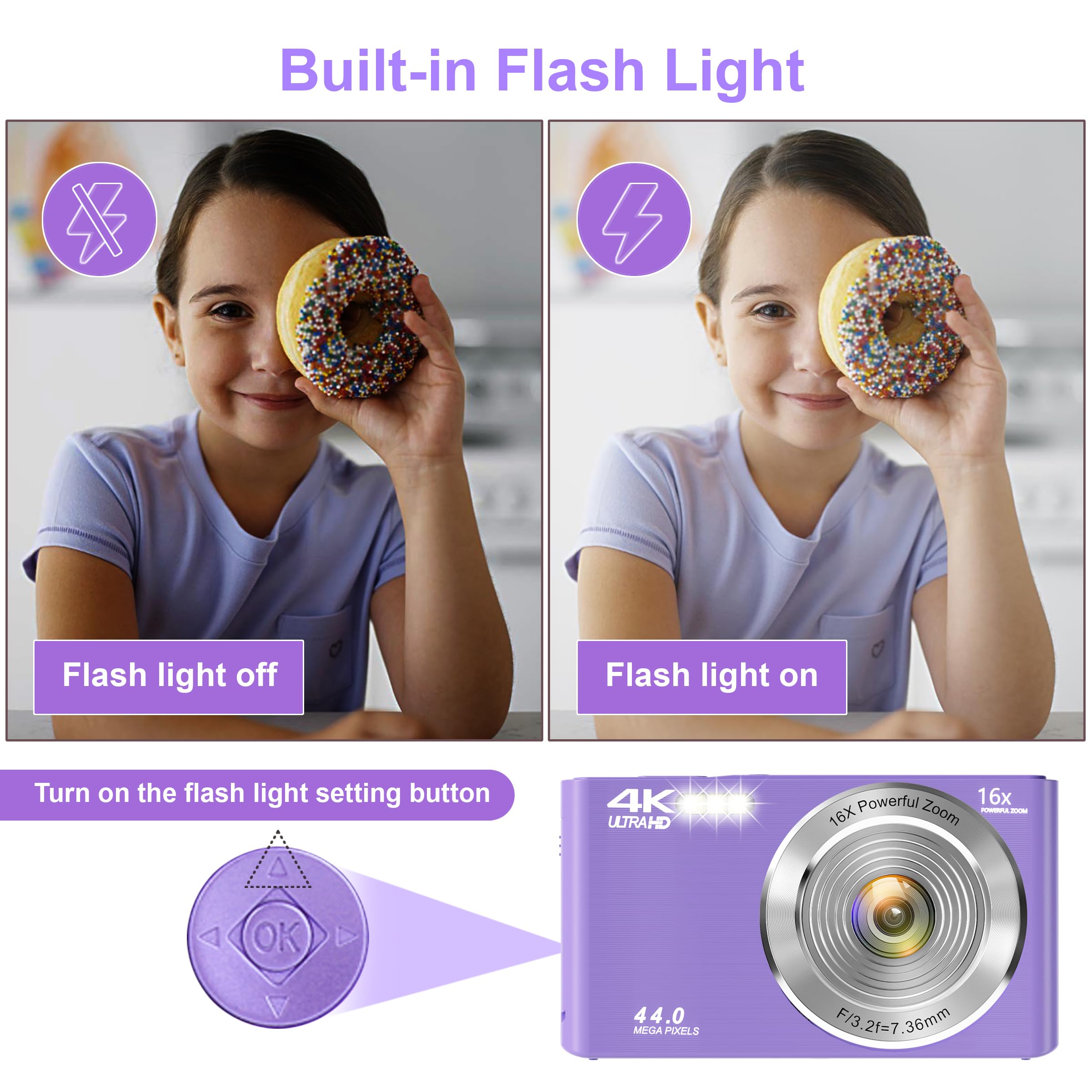 Digital Zoom 16X & Multifuntional:This digital camera for teens supports 16x zoom with a W/T button. With features like self timer, continuous shooting, time lapse, funny filters and scene modes etc, it's perfect for capturing creative and standout photos