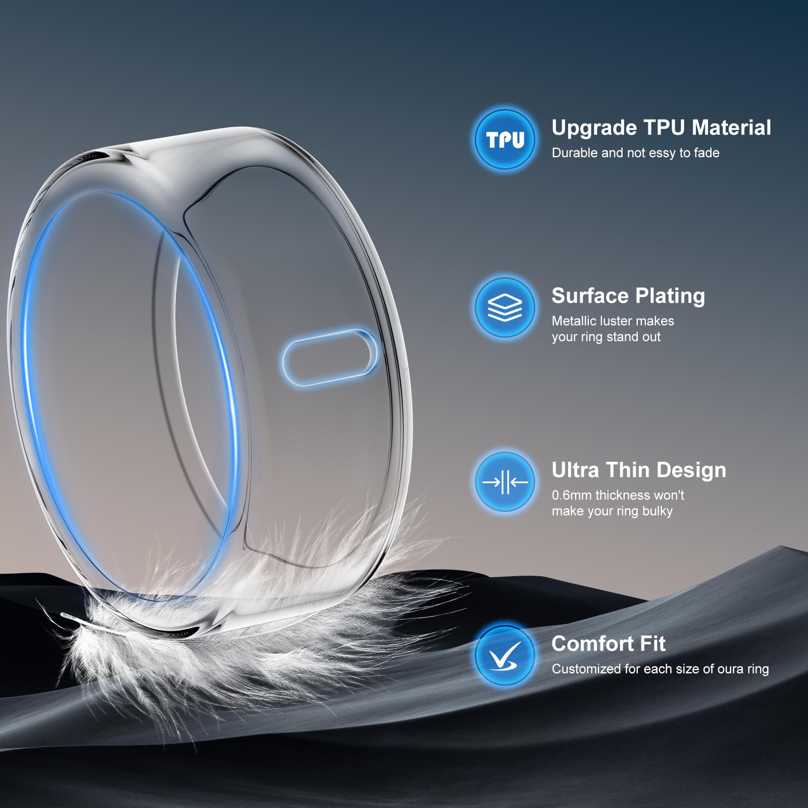 Premium TPU Material: Crafted from udgrade TPU with a premium electroplated coating, our Oura Ring case surpasses standard silicone—resistant to tearing, cracking, and wear for long-term protection. The advanced finish delivers a refined metallic luster, blending rugged strength with sleek sophistication.