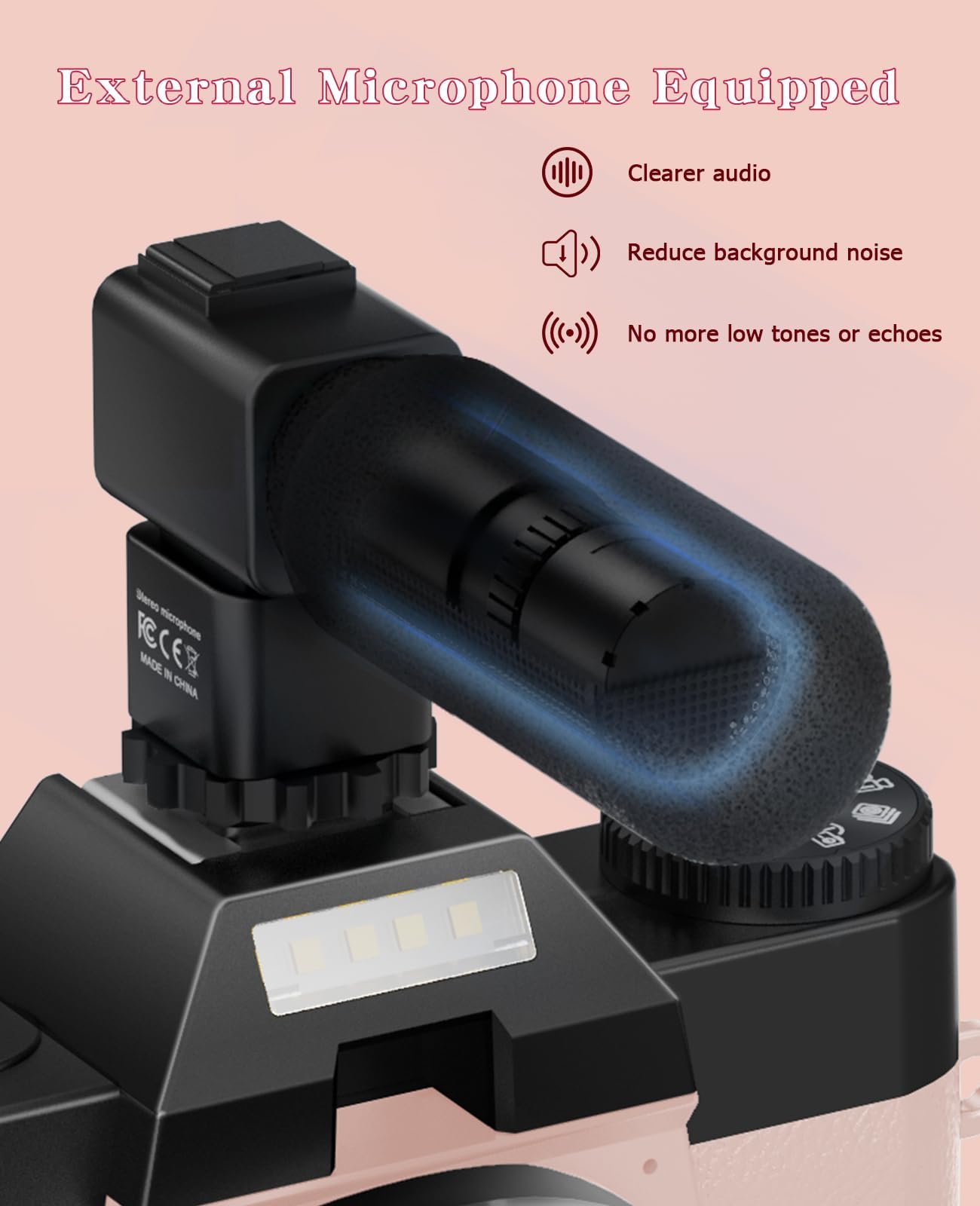 【External Microphone】This cámara digital equipped with the external microphone, the audio quality in your videos became clearer— no more muffled or echoey sound. Ideal for vlogging, streaming, or video calls.