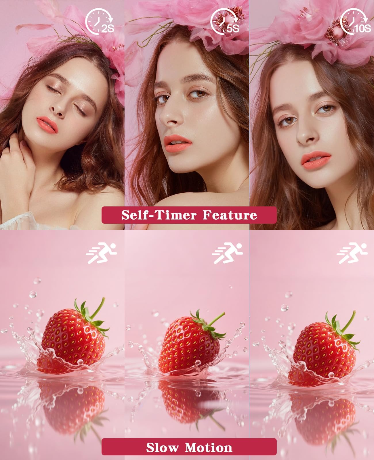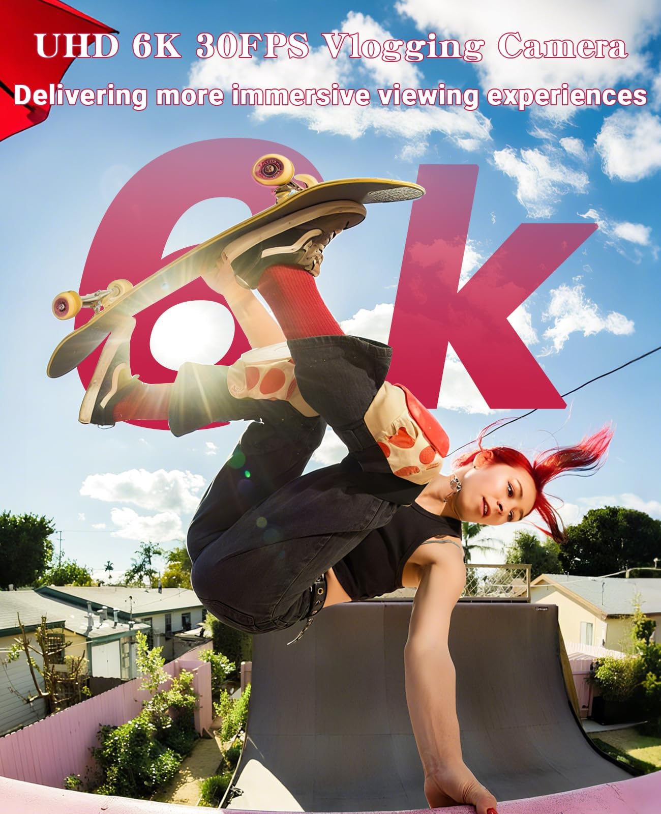 【Self-Timer Feature 】The Self-Timer on this camara fotografica sets a 3S/5S/10S/20S delay for hands-free shooting, ideal for group photos, self-portraits, or tripod use to avoid shake, ensuring sharp 6K results.Other features: continuous shooting, automatic shooting, shooting while recording.