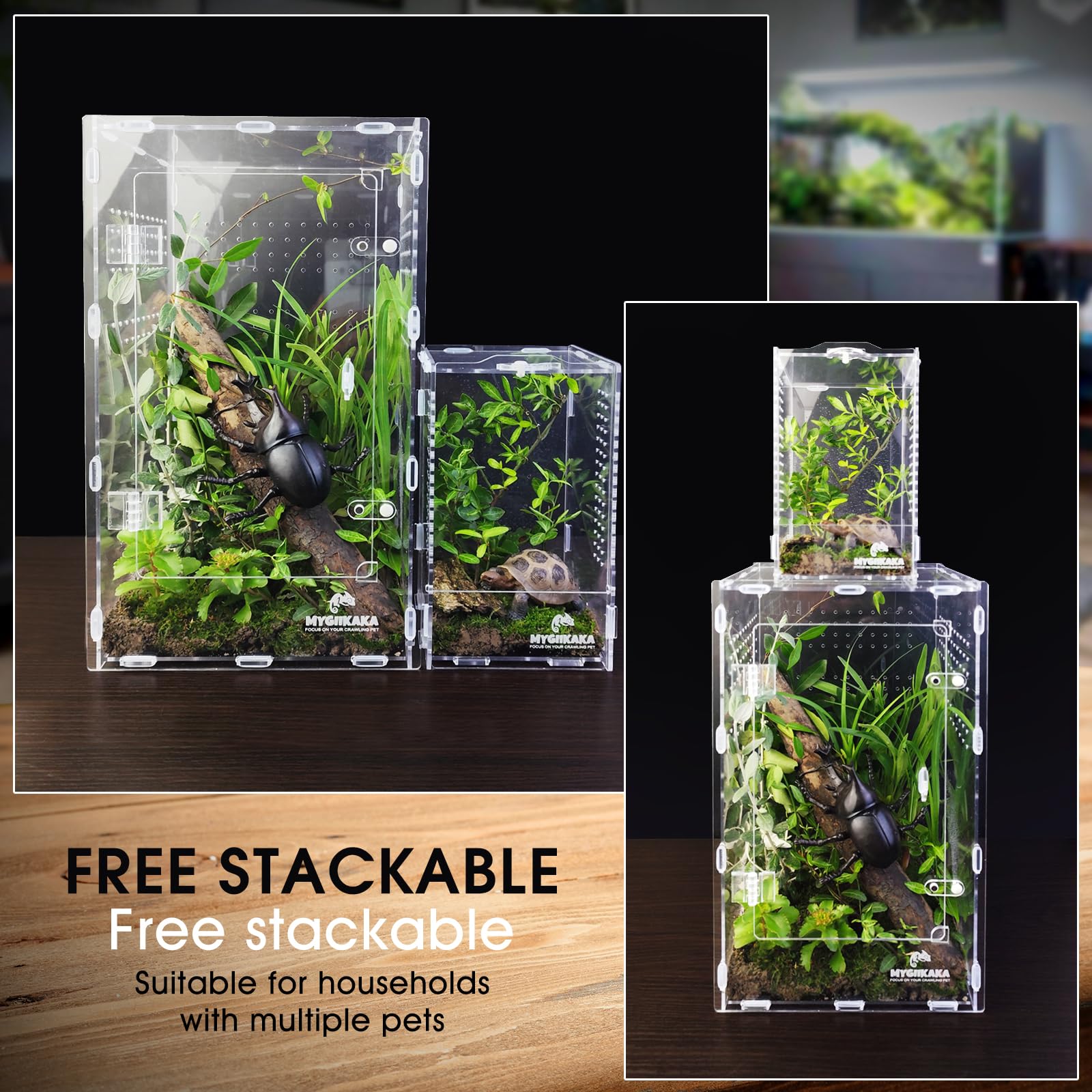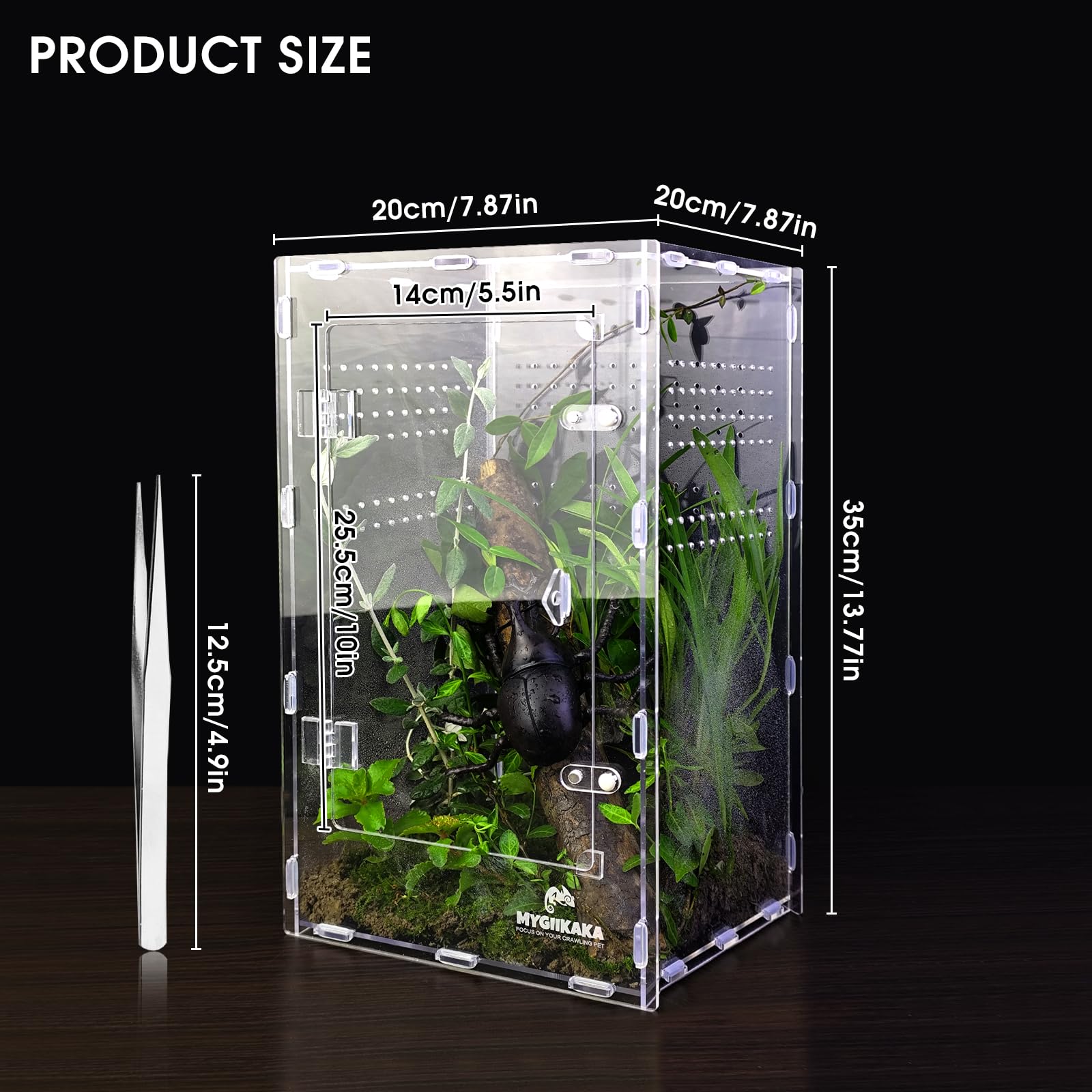 【Acrylic Reptile Terrarium】Our Large reptile cage measures 13.78" x 7.48" x 7.87", perfect size for kinds of baby reptiles or other small animals, providing sufficient room for reptiles pets to move around.