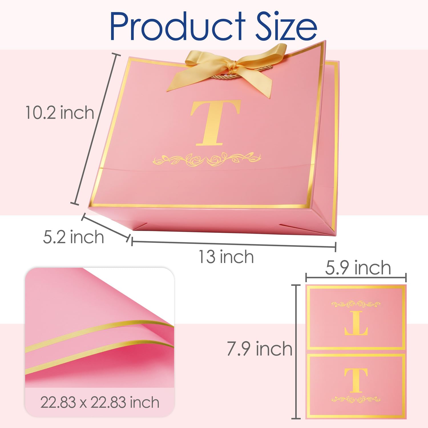 Birthday Gift Bag for Women: Each gift bag comes with 1 matching greeting card, 2 tissue papers and 1 ribbon. The gift bag measures 13" length × 10.2" height × 5.2" width, the greeting card measures 7.9" length × 5.9" width, and the tissue paper measures 23.6" length × 17.7" width, providing a stylish presentation for your gifts.
