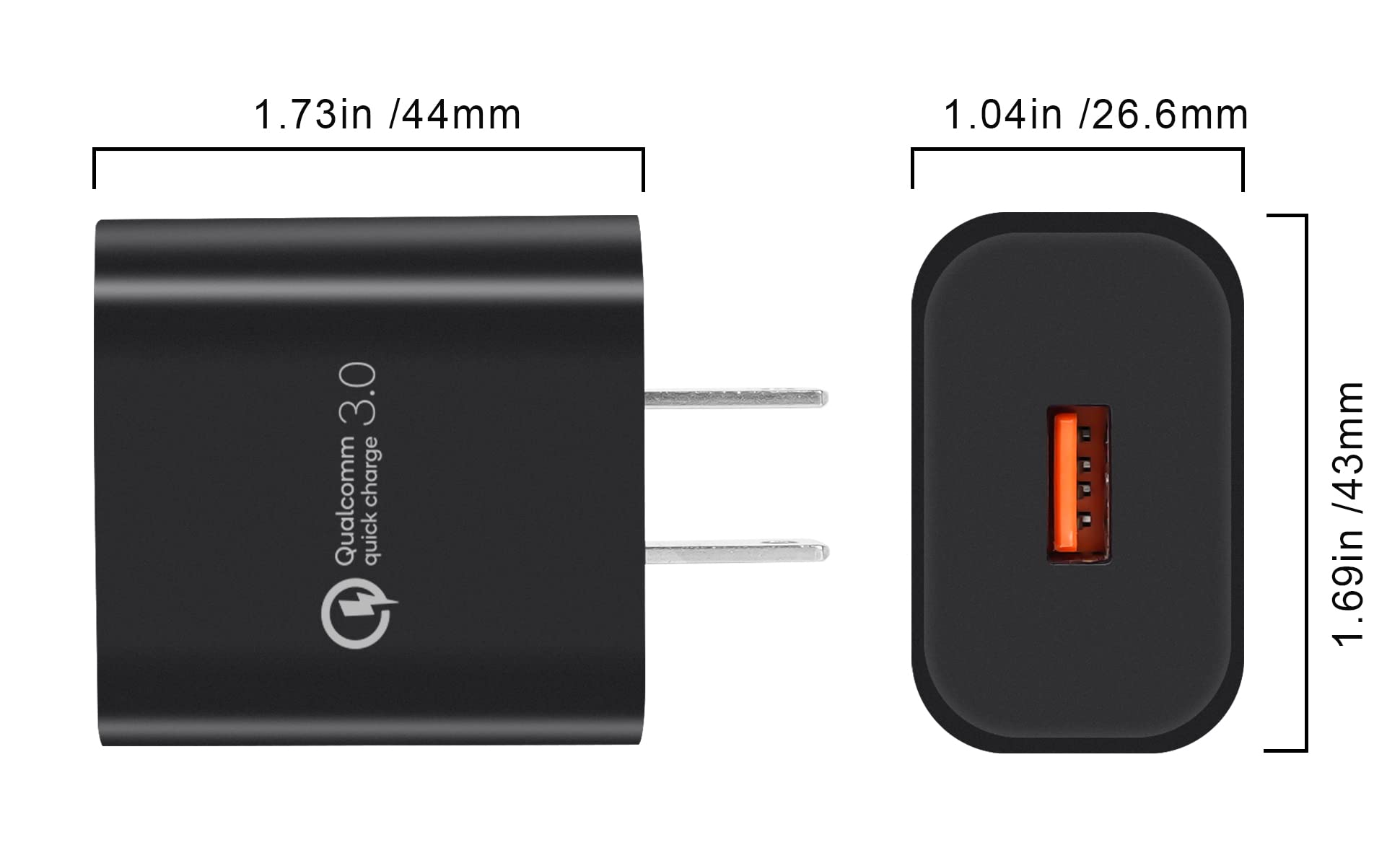 18W Quick Charge 3.0 USB Wall Power Charger. Input: 100v - 240v.Output: Output: 3.6V-6.5V/3A, 6.5V-9V/2A, 6V-12V/1.5A (Max). 18W Power Max.