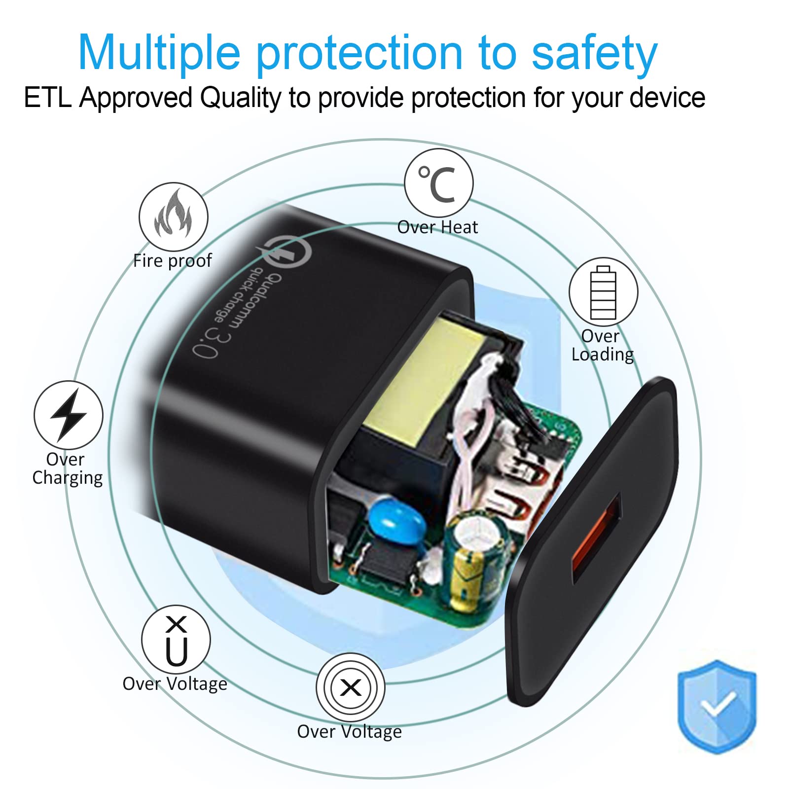 ETL/CE / FCC / PSE / ROHS Certified.Premium Quality Safe Charge Your Device.Broad Compatibility with Auto Detect Technology , Charge Different Device as fastest in Suit Power Output