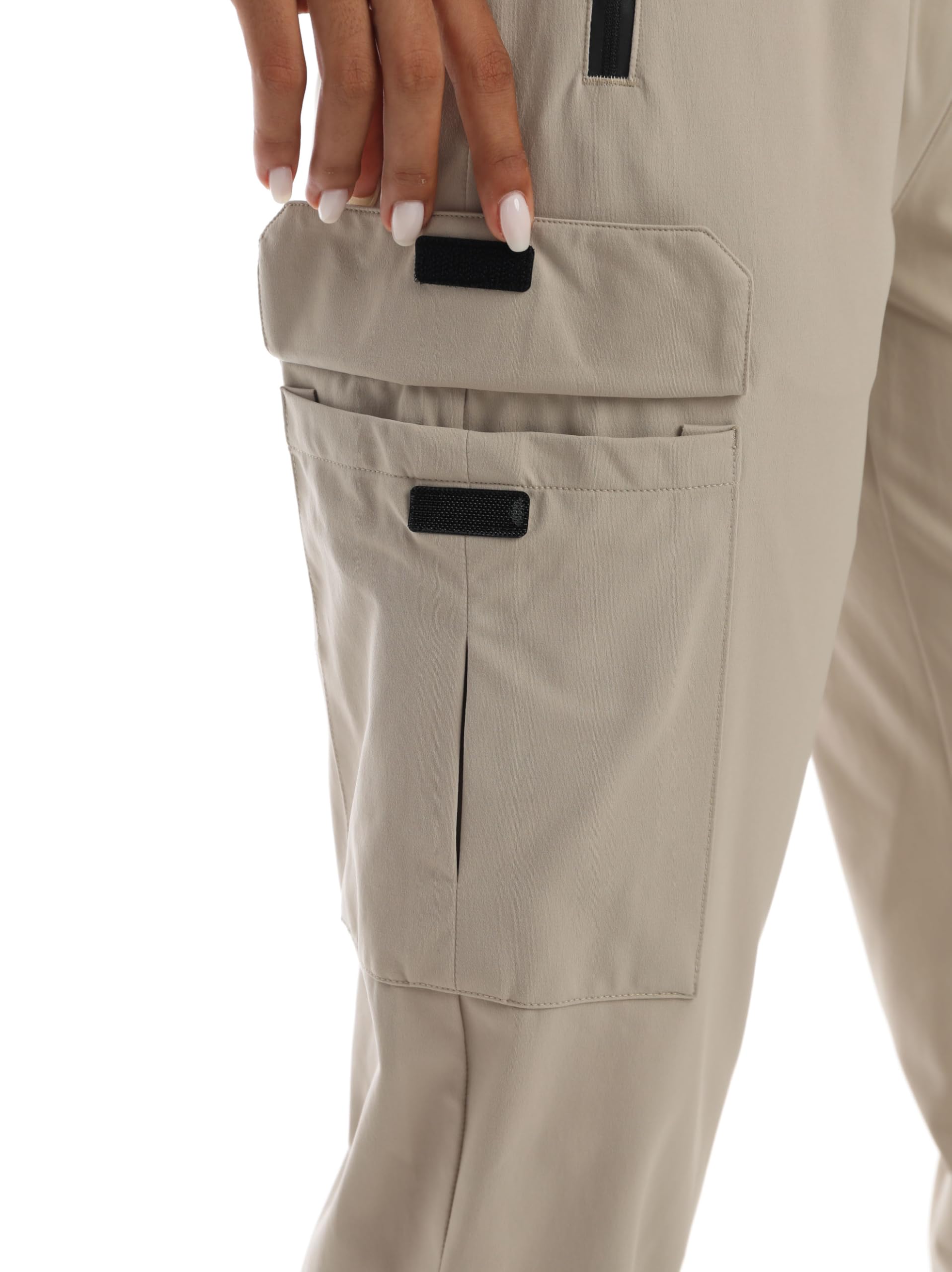 Versatile Pockets: These Women's Hiking Pants with Four Pockets, Including Two roomy Zippered Pockets and Two large hook-and-loop side pockets. The Deep Side Zippered Pocket Is Ideal for Safely Storing Your Essentials When You're Go