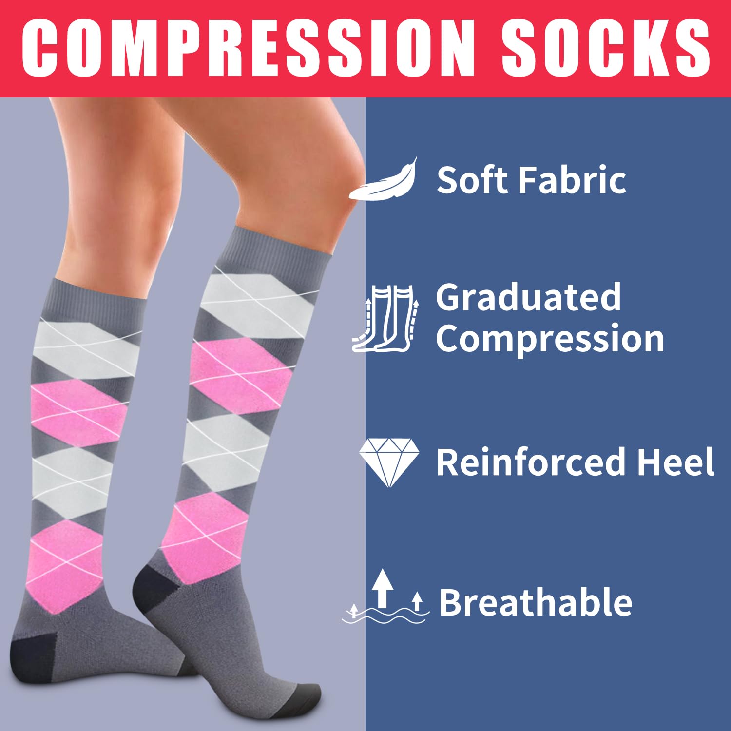 SATISFACTION -We listen to customer fine-tune every detail to ensure quality, The customer is first. We stand by our socks and our promise to help you feel better.If you find that our socks do not meet your expectations, we are here to assist you with a solution to ensure you're content with your purchase. Simply reach out to us, and we'll work together to resolve any issues you may have, always aiming to provide you with the best possible customer experience.