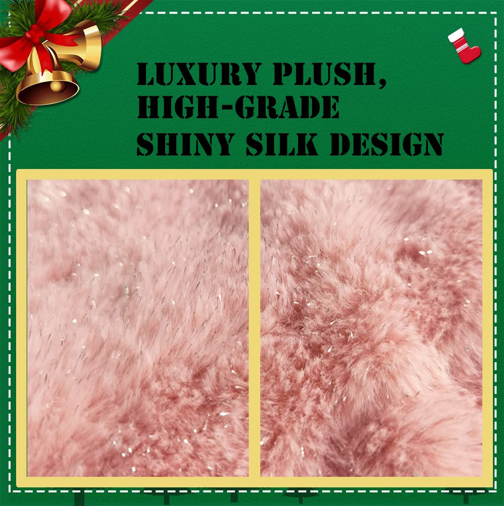 High Quality:Pink Shiny Faux Fur tree skirts use premium double fabric material, 36 inch--soft and warm,the favorite spot for pets in winter.