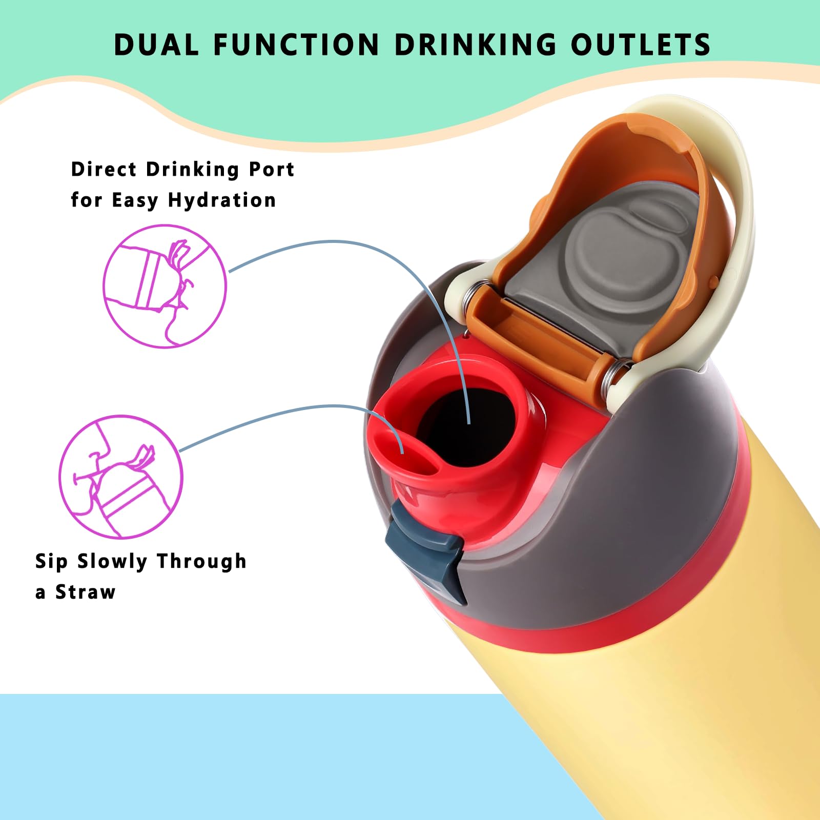 【2-in-1 Drinking Options】Enjoy two convenient drinking options with the compatible with Owala replacement lid. Featuring two drinking ports, it allows you to sip through a small opening or take a big gulp through a larger one. Plus, it’s compatible with your original straw, making it a versatile solution for easy hydration on the go.