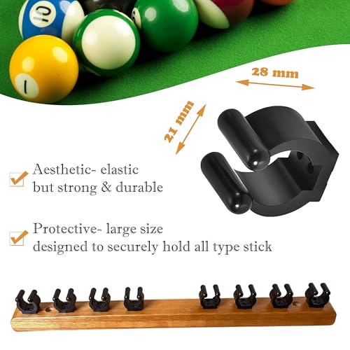 PREMIUM MATERIAL: Not only does this solid wood pool stick holder wall mount build for last, but it also offers climate change friendly, promotes wealth & wellbeing. The high-quality craftmanship enhances the natural beauty of wood grain, makes this billiards cue rack unique.