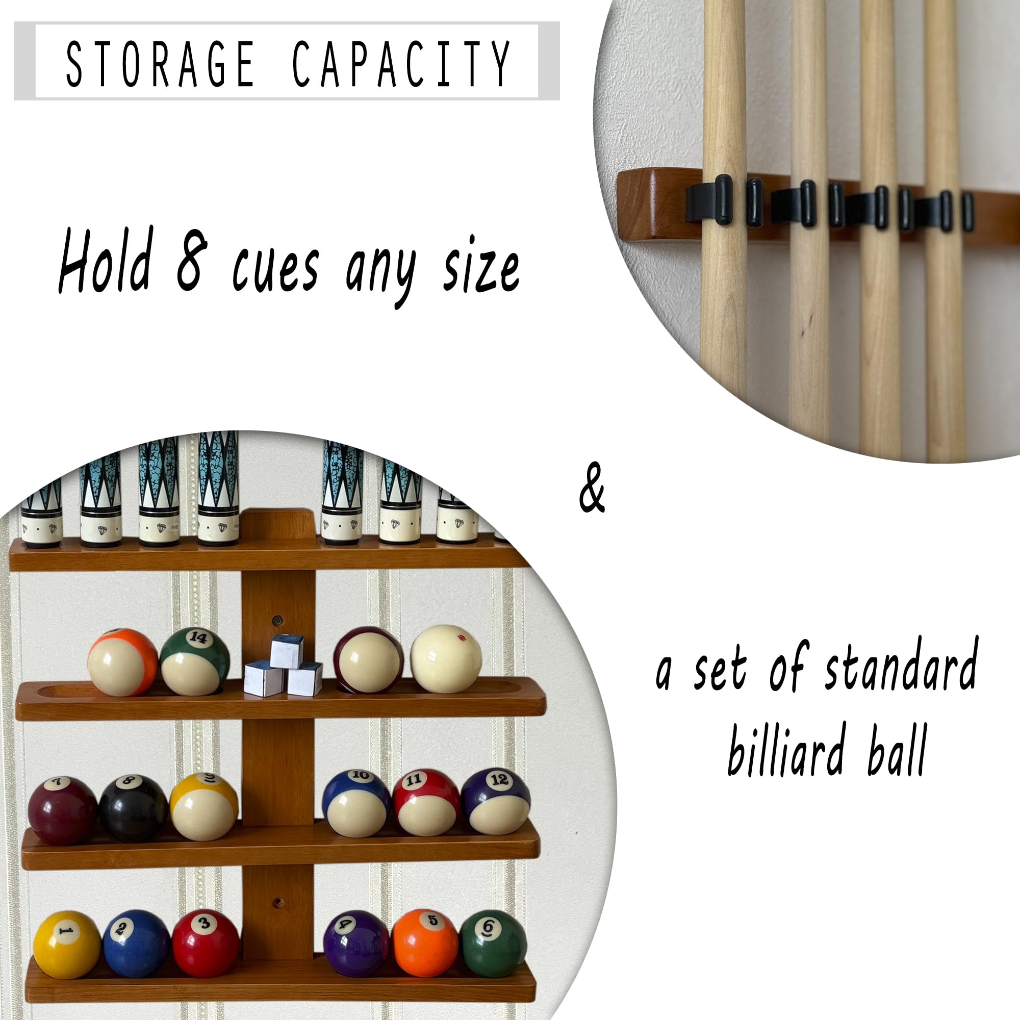 DECORATIVE: This 8-pool cue holder not only provides effective storage solution for your cues & full set of billiard ball but also sits nicely as the piece of furniture on your wall near the pool table.
