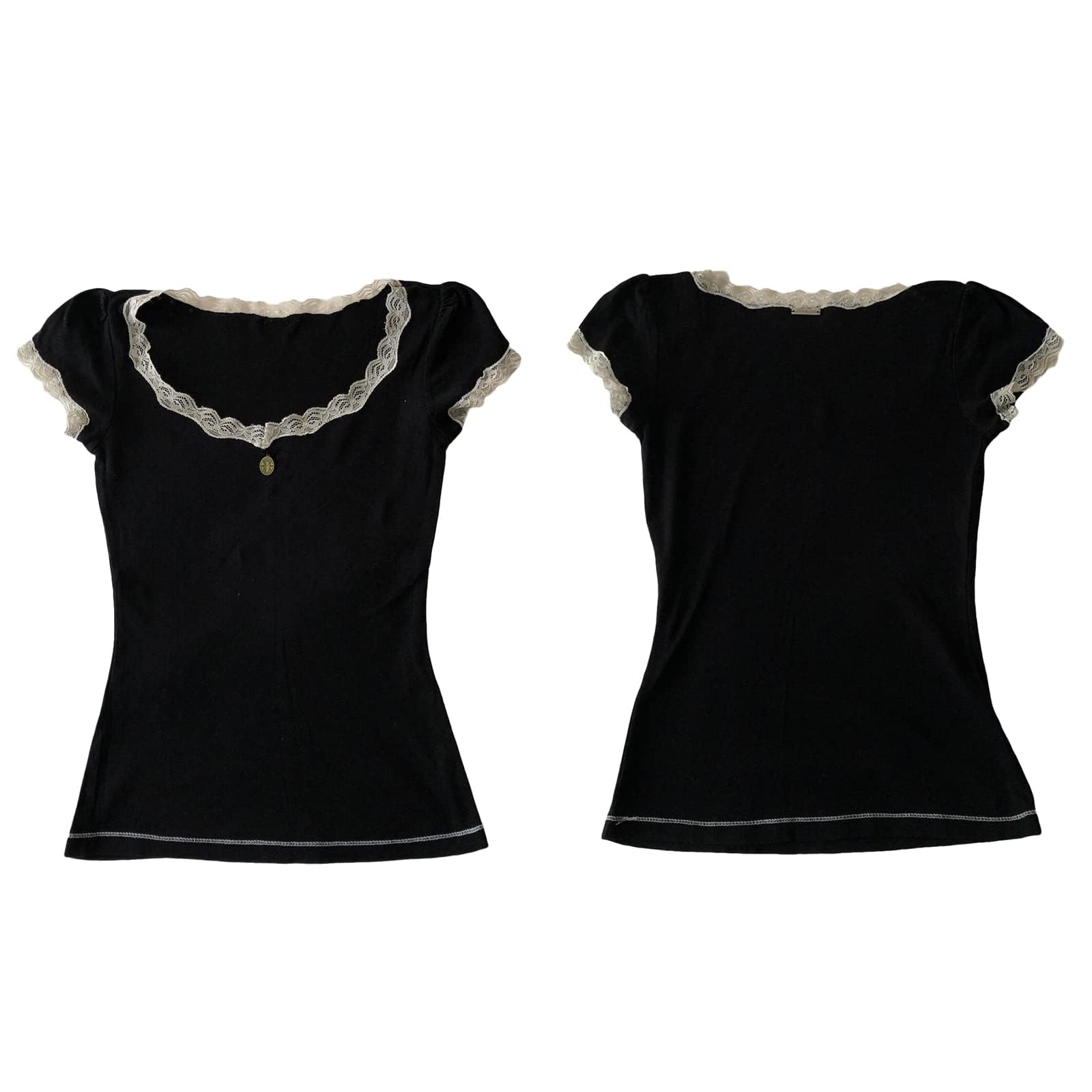 Features: Vintage lace trim cropped tees, fairy grunge baby tee is easy to fit any body figure, y2k crop tee tops, 90s vintage aesthetic shirts for women, making you more charming and elegant.