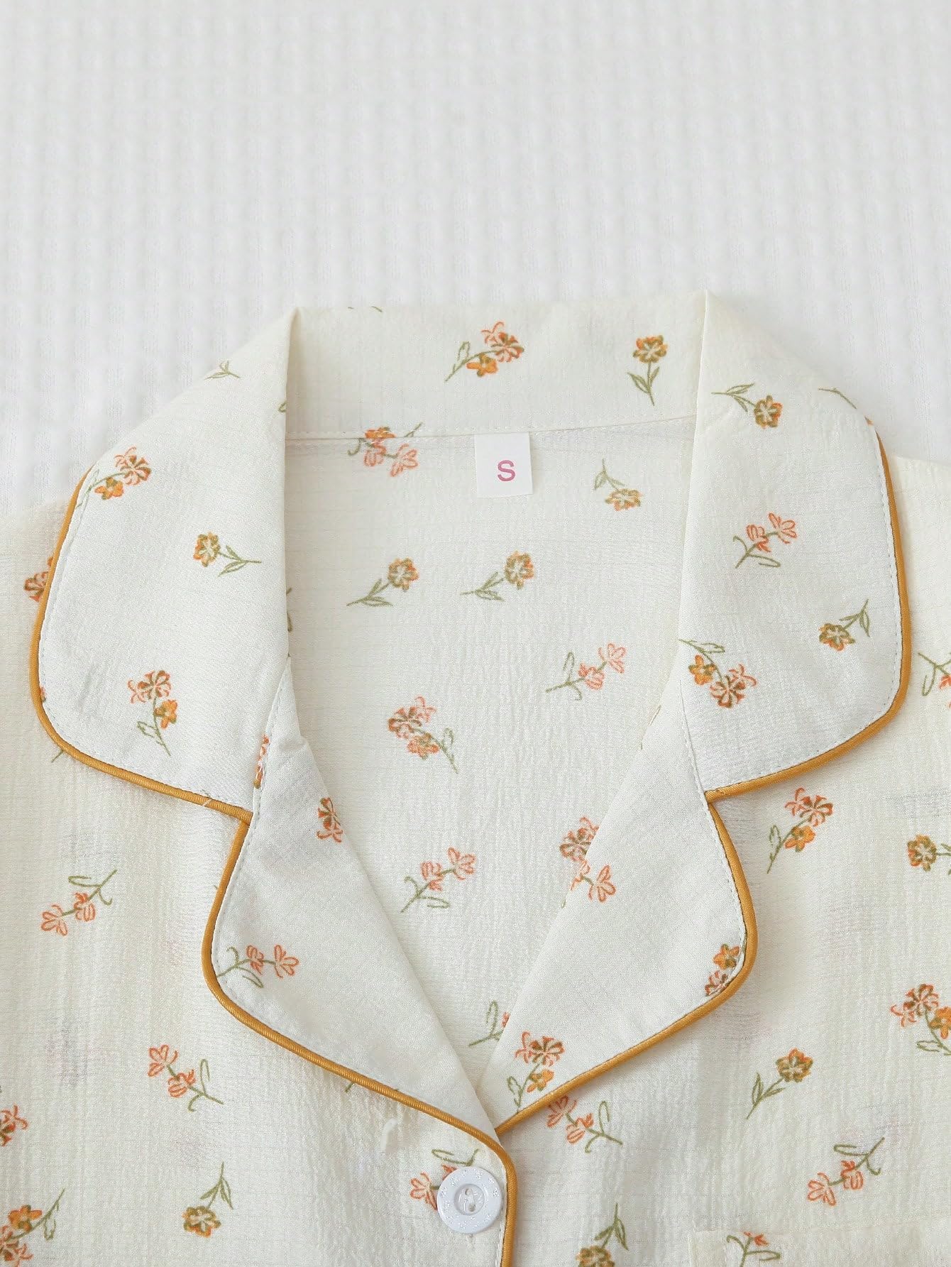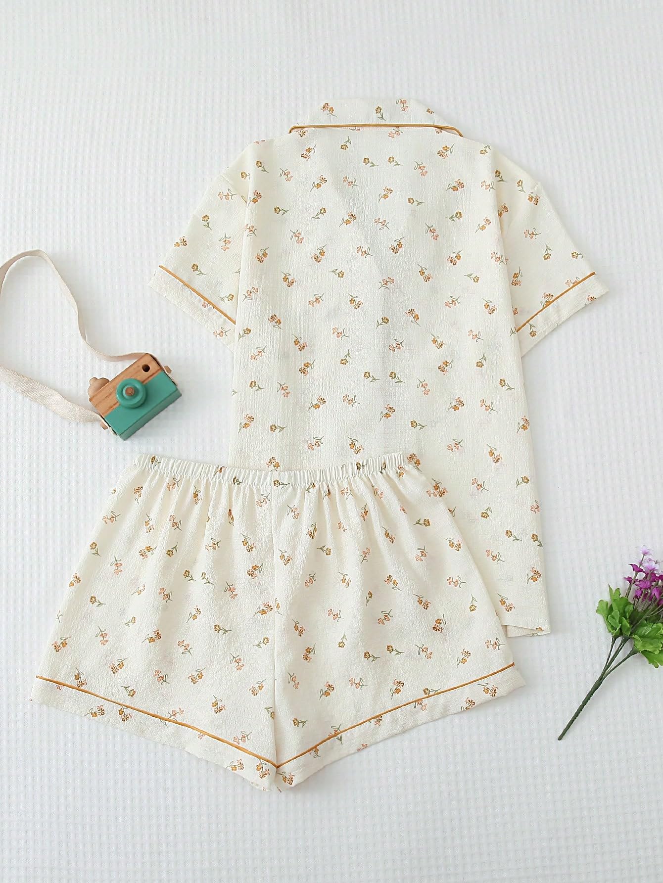 Lapel Collar, Short Sleeve, Print Pajamas, Bow Decoration, Button Down Top and Shorts, Loungewear Sets, Women's Sleepwear.