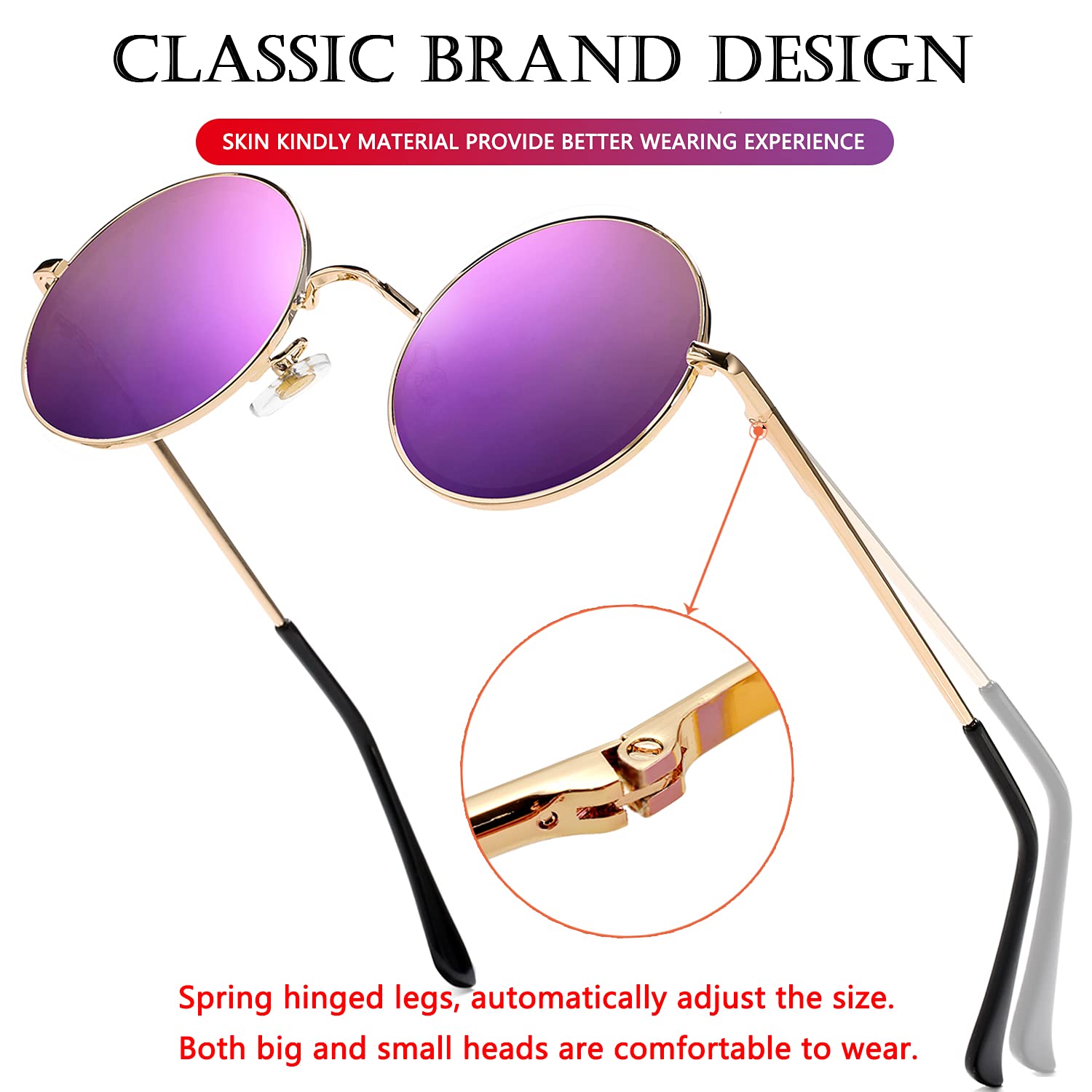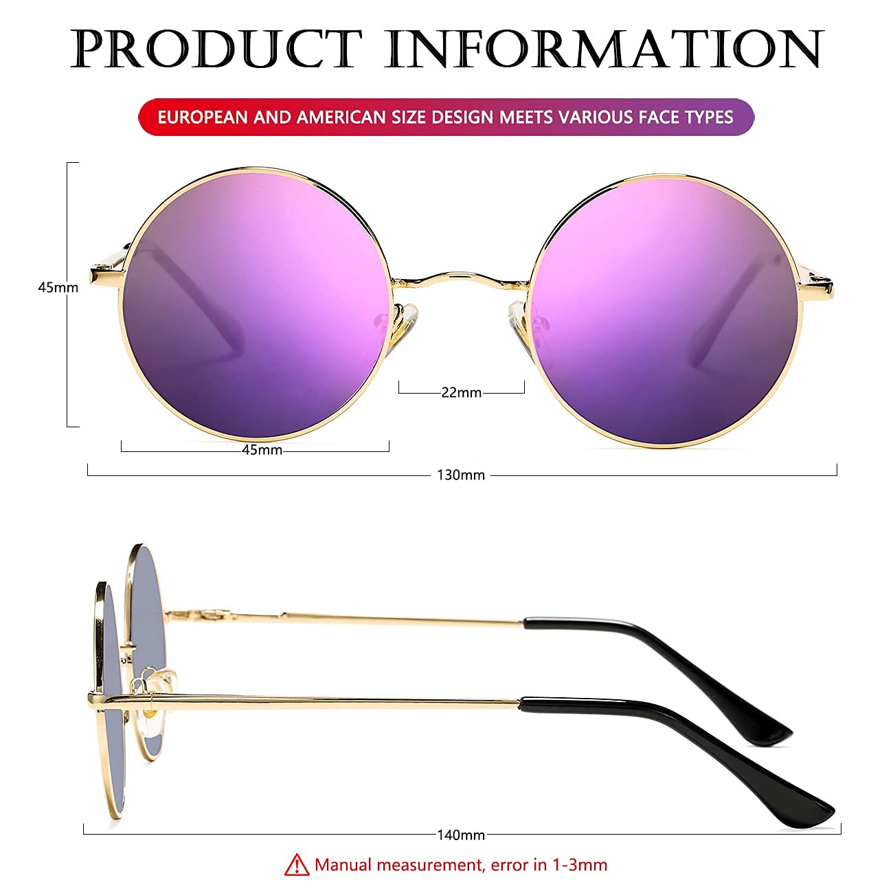 VINTAGE ROUND METAL FRAME ►Ergonomic design frame, a curved brow bar, reinforced metal hinge, adjustable nose pads, durable metal flexible spring hinges temples, classic design make these small round sunglasses for men and women more comfortable and durable while you are wearing.