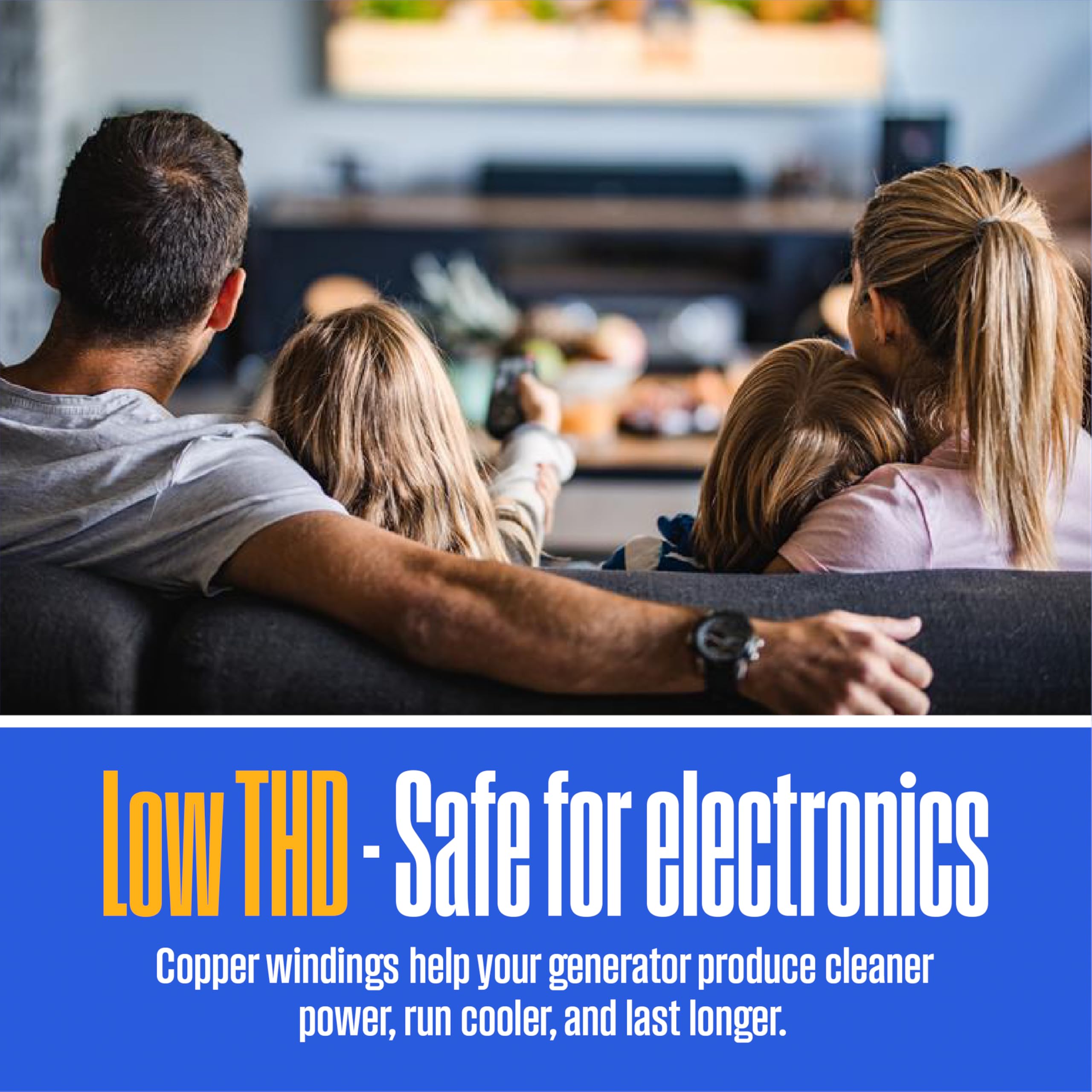 Engineered with Low THD, So It's Safe for Sensitive Electronics. Power Phones, Computers, TVs and More. Stay Connected with People, News and Entertainment During Power Outages, or on Jobsites and Campsites. Durable Copper Windings Help Your Generator Produce Cleaner Power, Run Cooler and Last Longer
