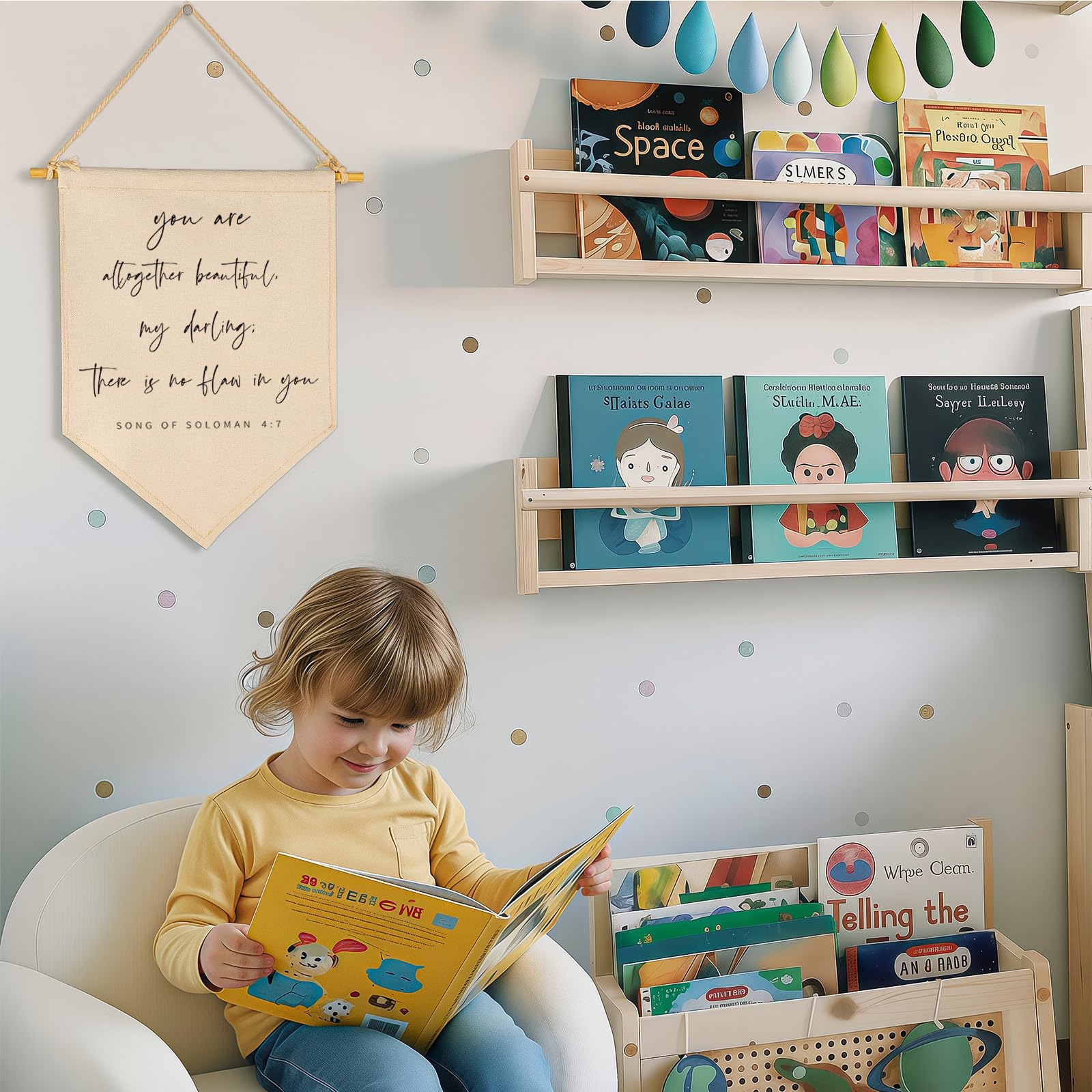 Perfect Size for Baby/Kids's room Space – Our banners are Designed for baby kids teen room wall decor, this wall decor fits changing table or reading corner, playroom,reading room,making a sweet statement without overwhelming small spaces