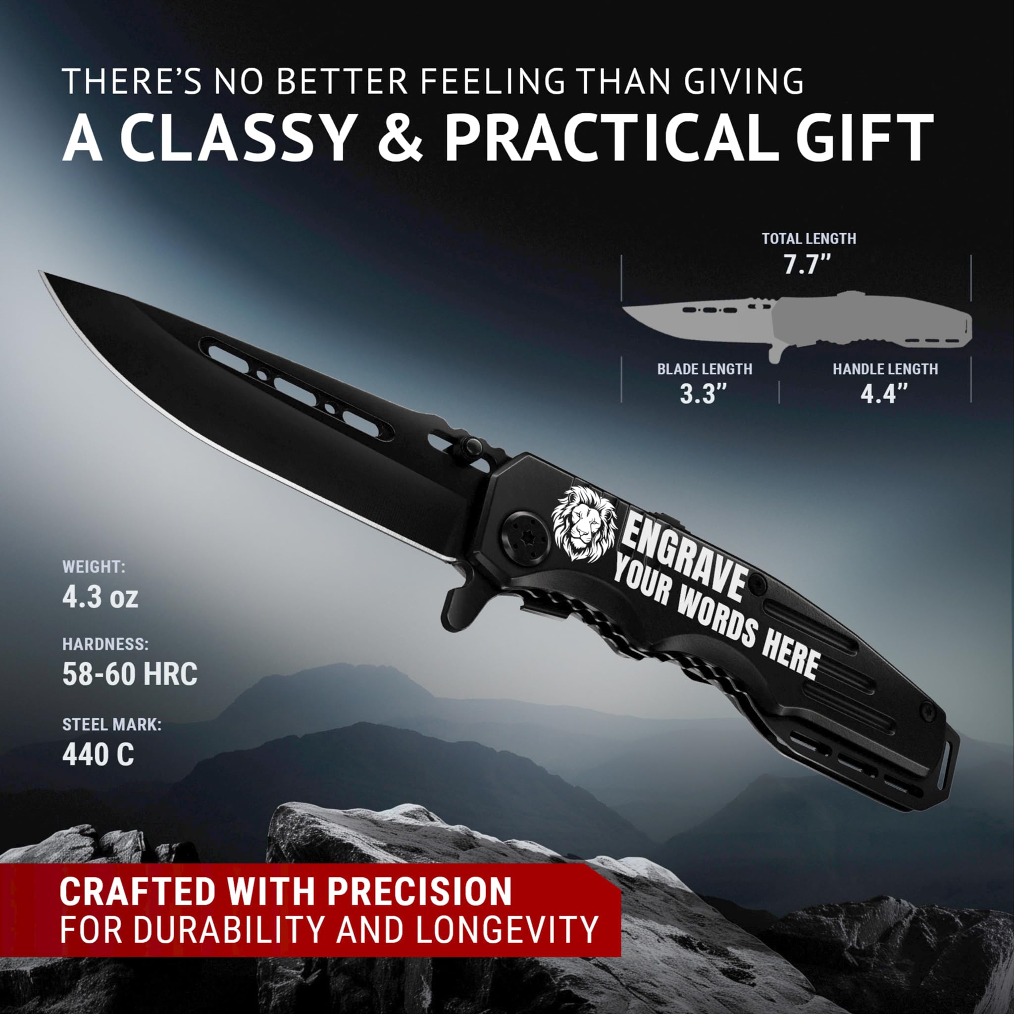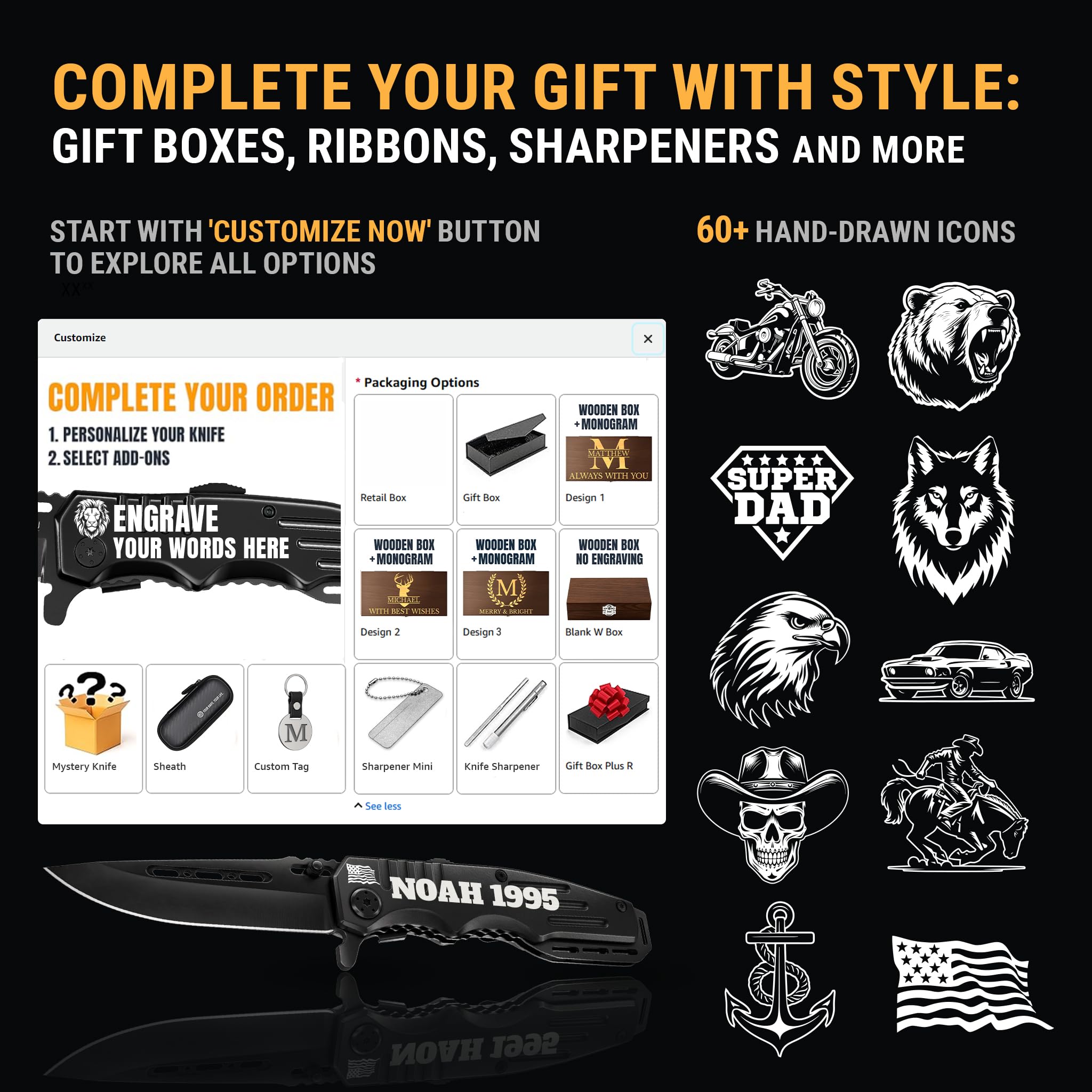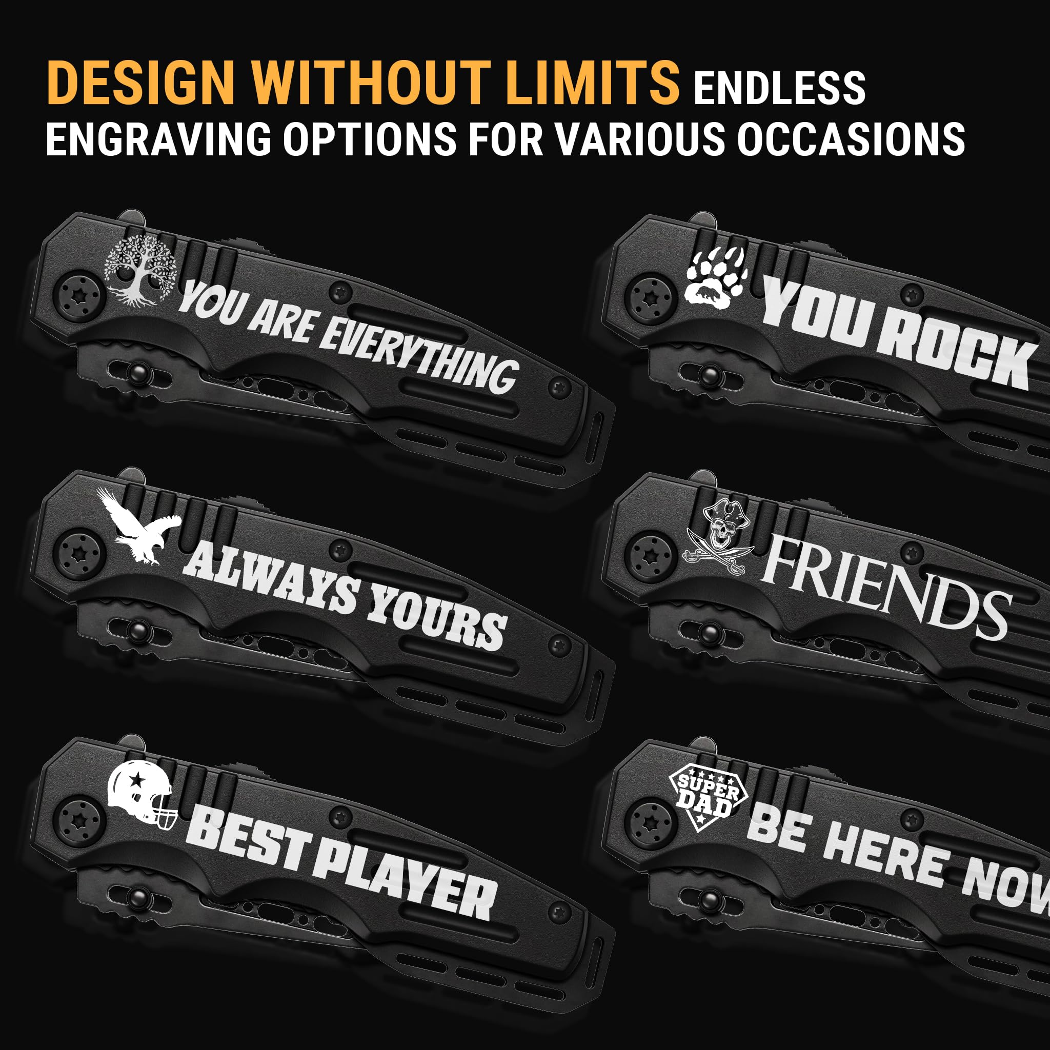 Design Your Personalization. Customize your knife with our engraving options by adding a name, special message, icons, along with additional items. With its durable design and personalized features, this pocket knife combines practicality with personal style, making it a standout gift. Perfect for men who appreciate unique, customized pocket knives.