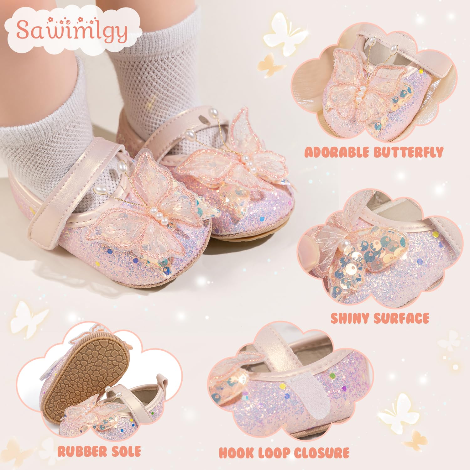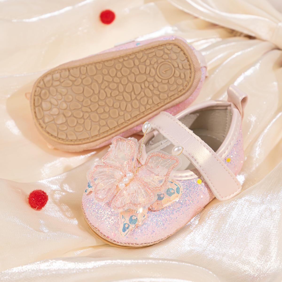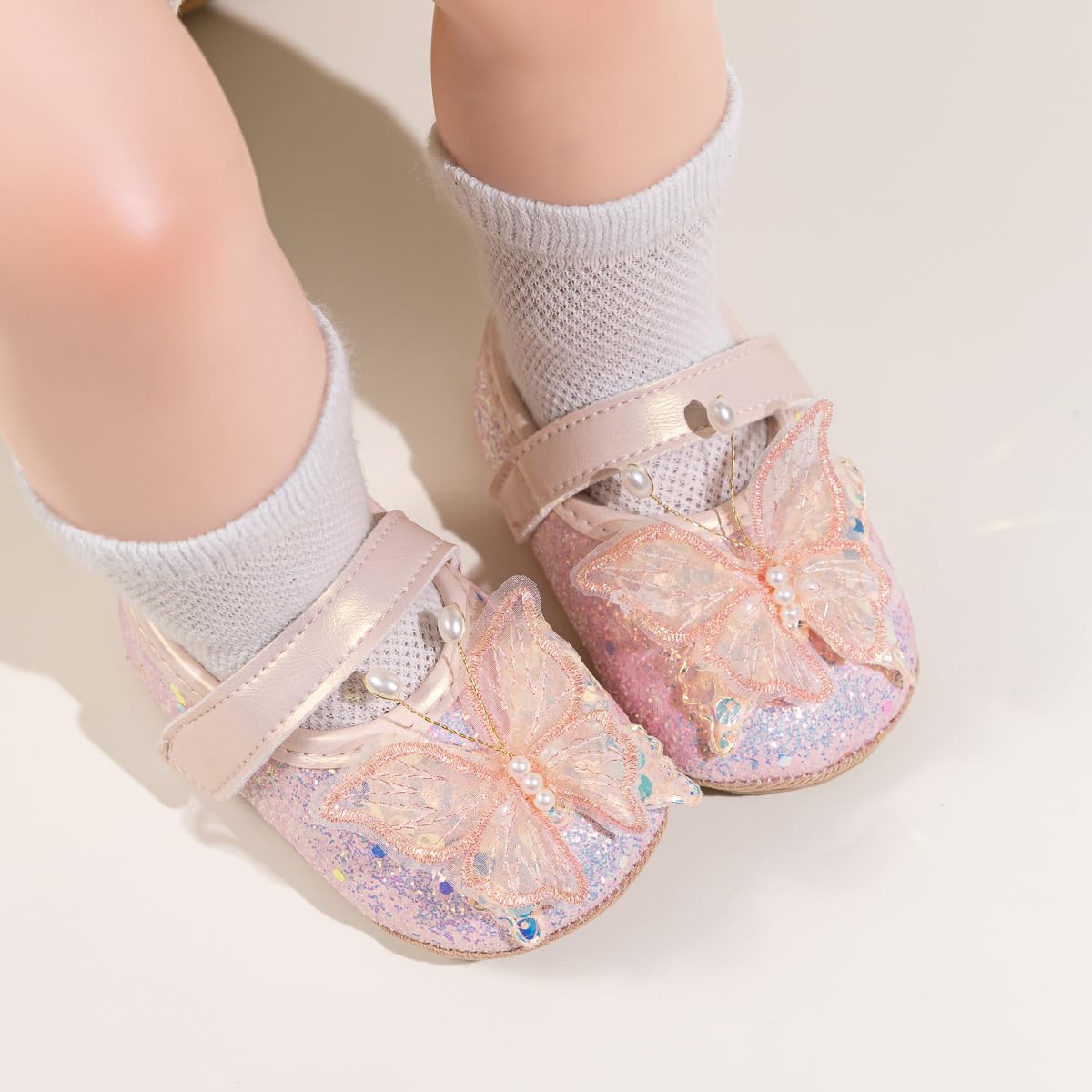 Glitter Design: The glitter butterfly design whith pearl and shiny surface make your little kid more eyes-catching. These first walkers shoes suit for any occasions like crawling, walking and playing or photography