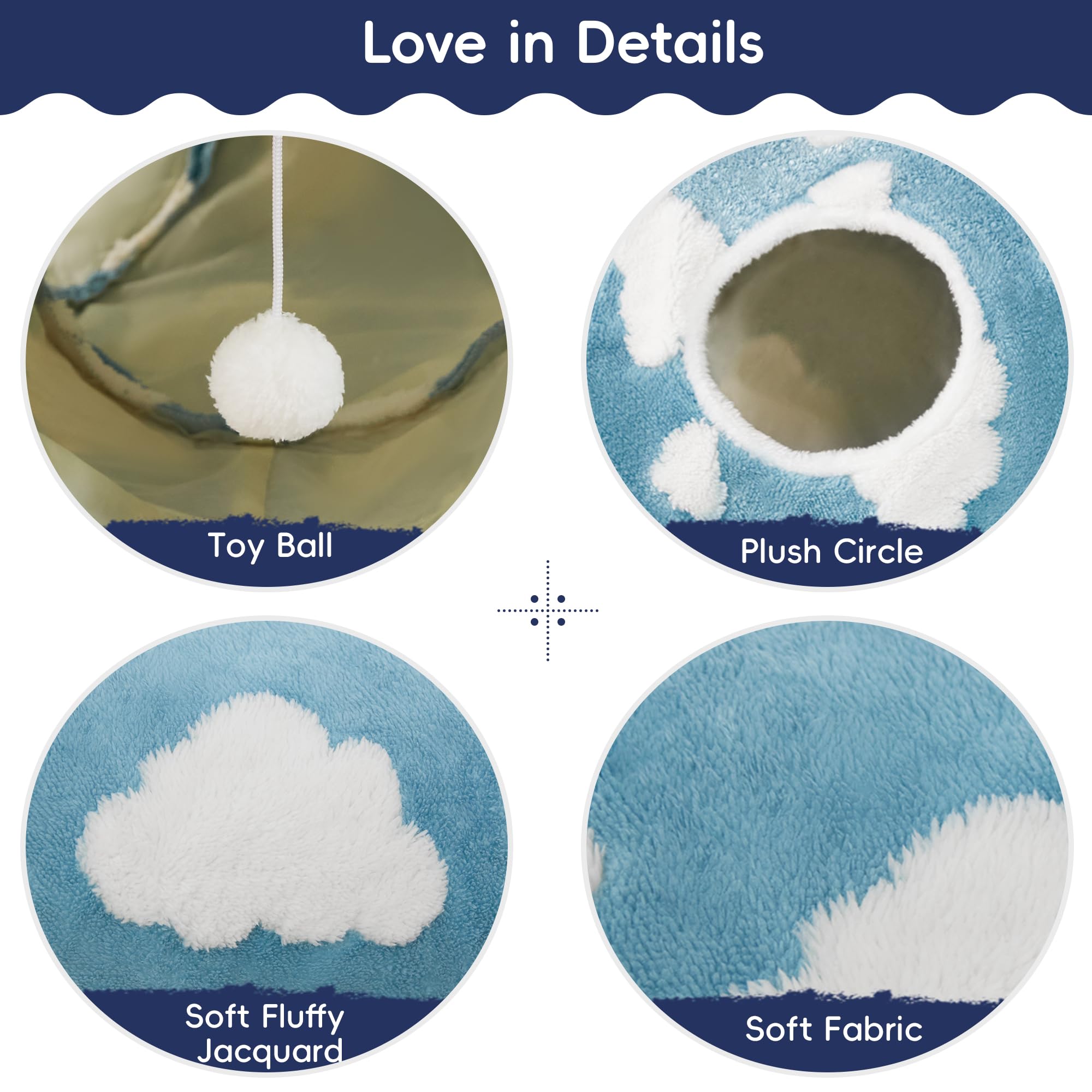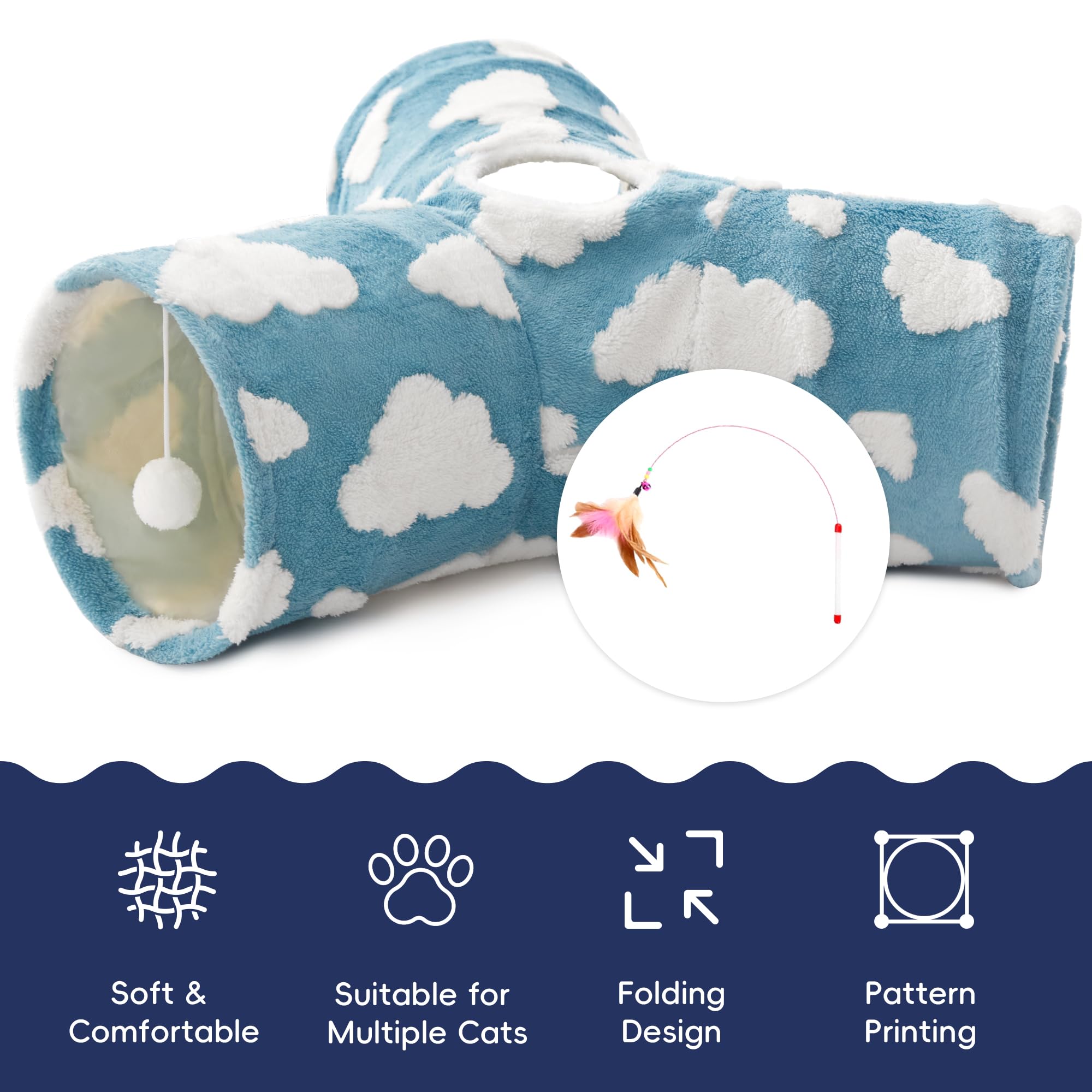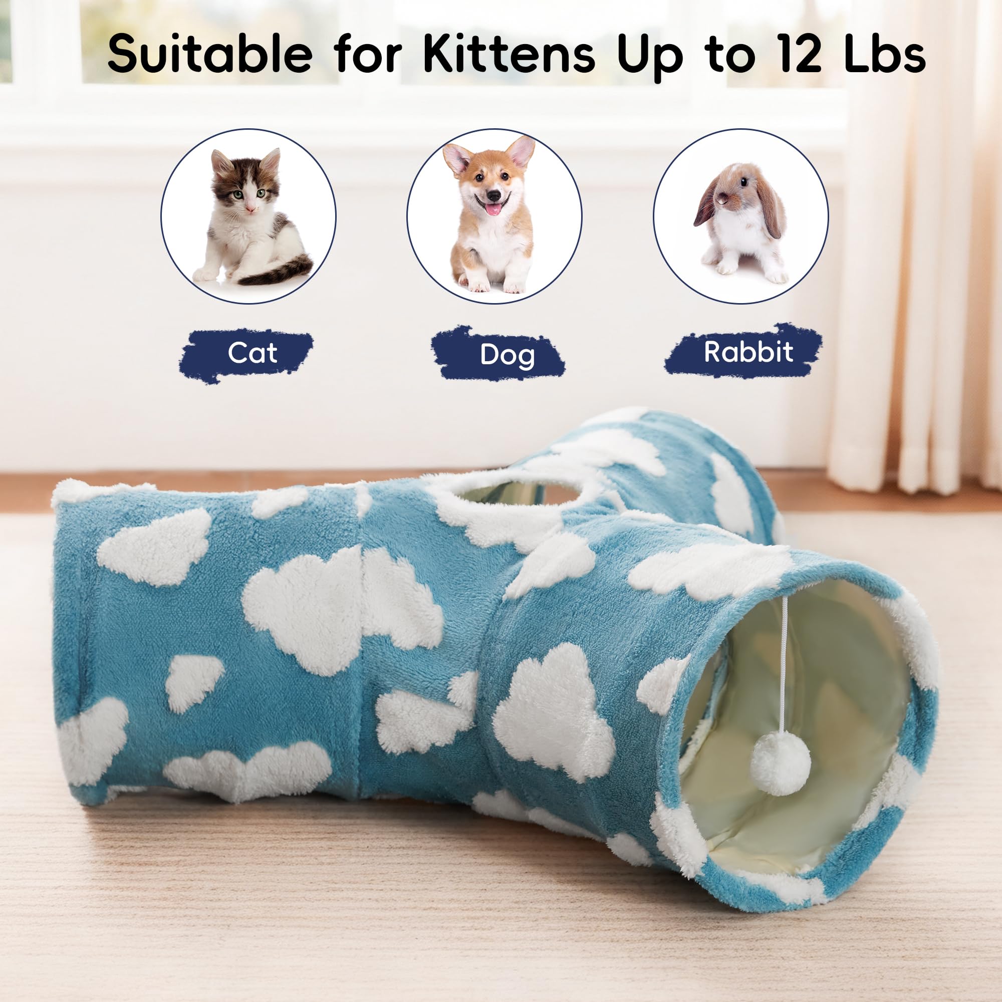 Best Ways to Play: Our cat tunnel with 3 spacious tunnels, peephole & beall toy, this popular cat toy gives your kitty more ways to have fun. Provides hours of exercise & self-amusement.And its furry appearance can decorate your room, giving you a beautiful experience.
