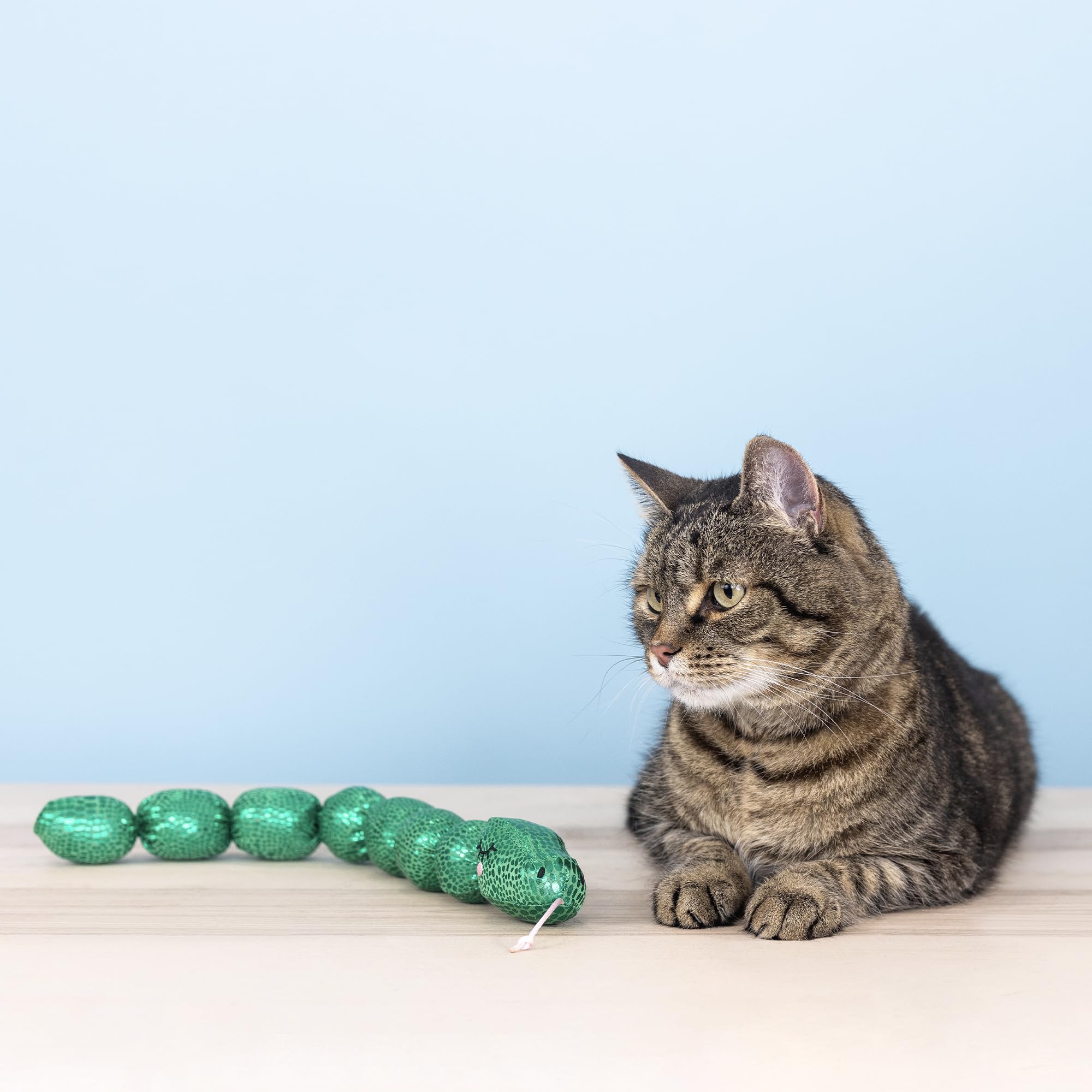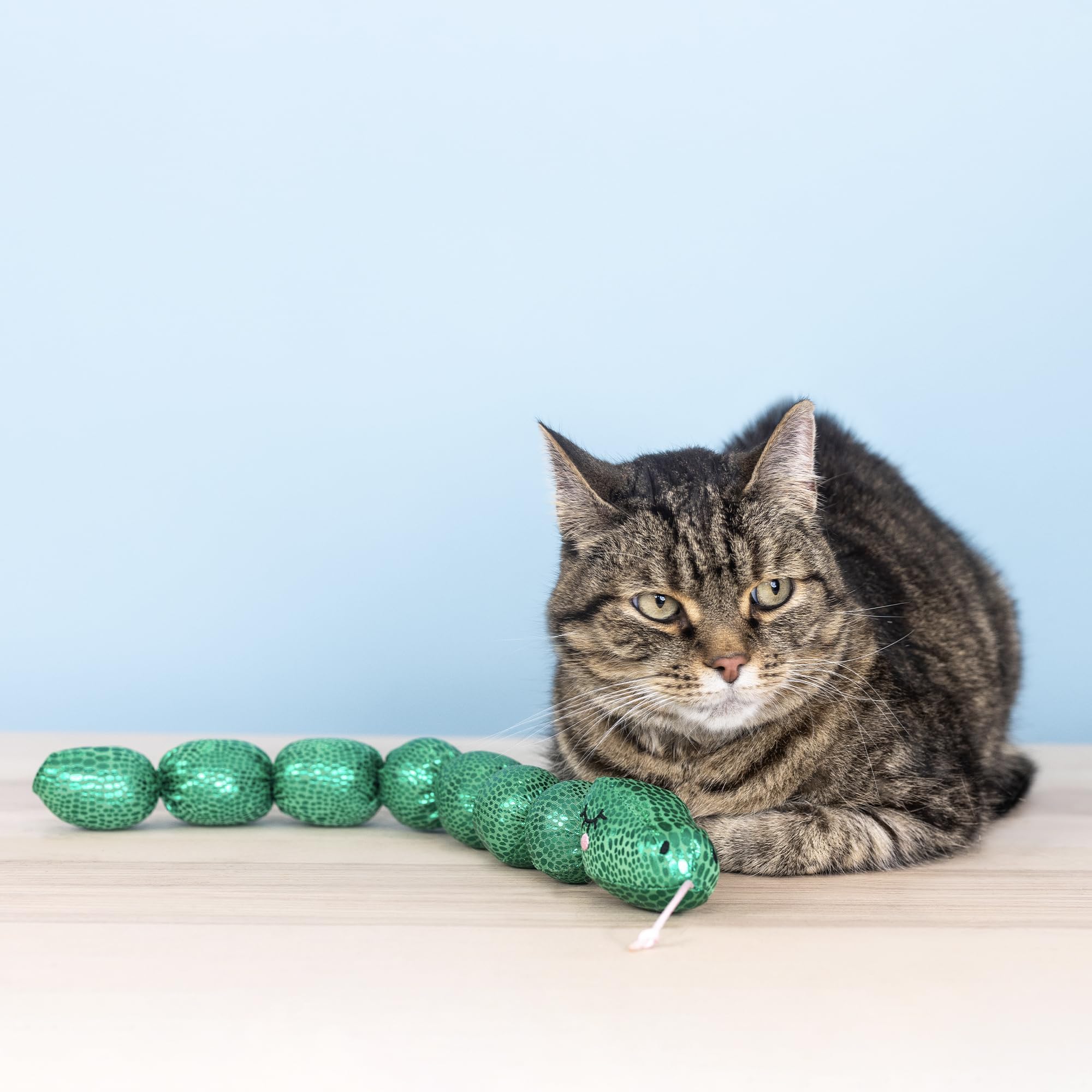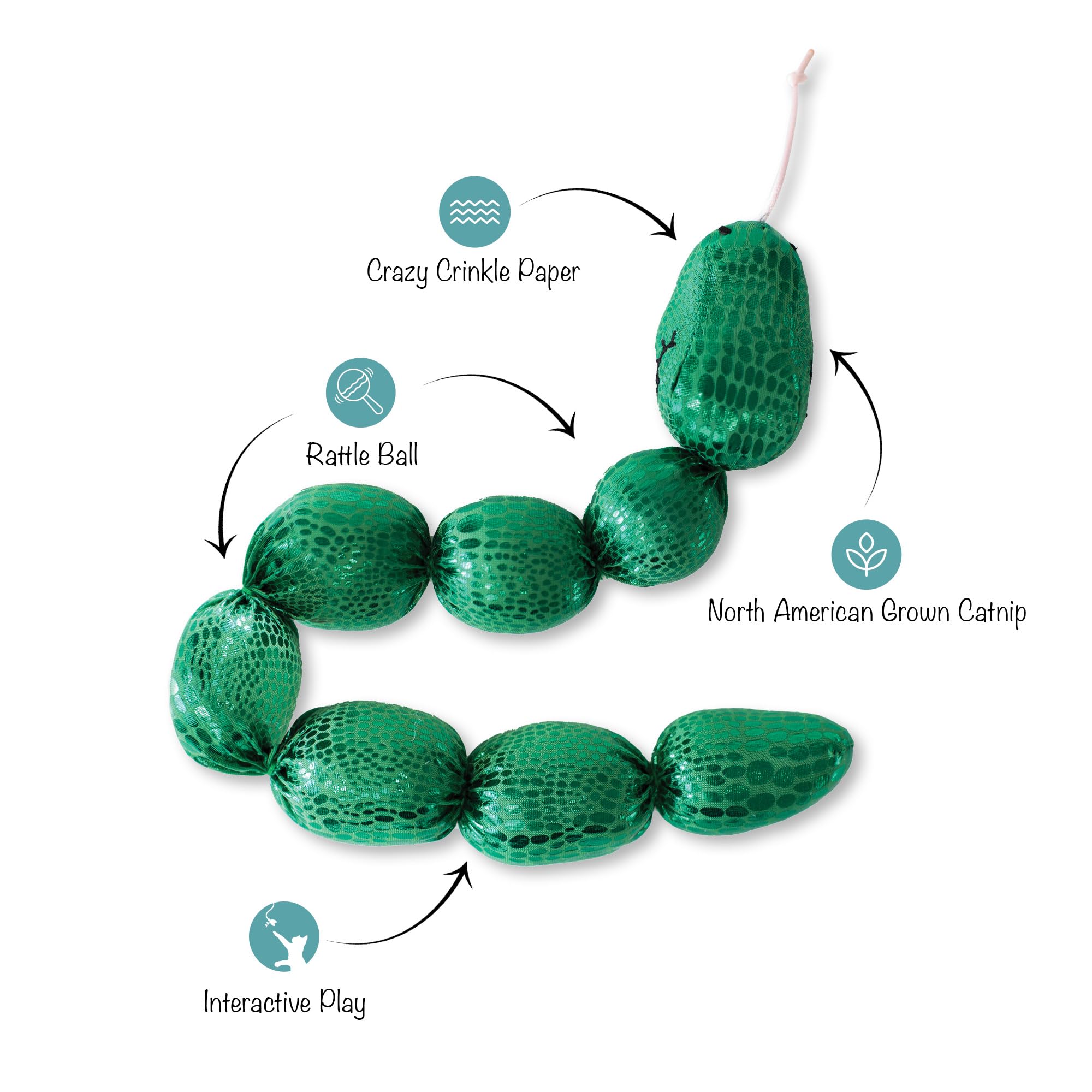 Sssssooo much fun! PetShop by Fringe Studio's "Not So Easily Rattled” kicker plush cat toy is purrfect for the playful kitty. Made with reflective plush, 2 rattle balls, crazy crinkle paper, and North American grown catnip, this toy was designed with interactive play in mind. Great for pounce, bat, chase, and play, this toy is ready to shake up your kitty's playtime. Made for cats of all sizes.