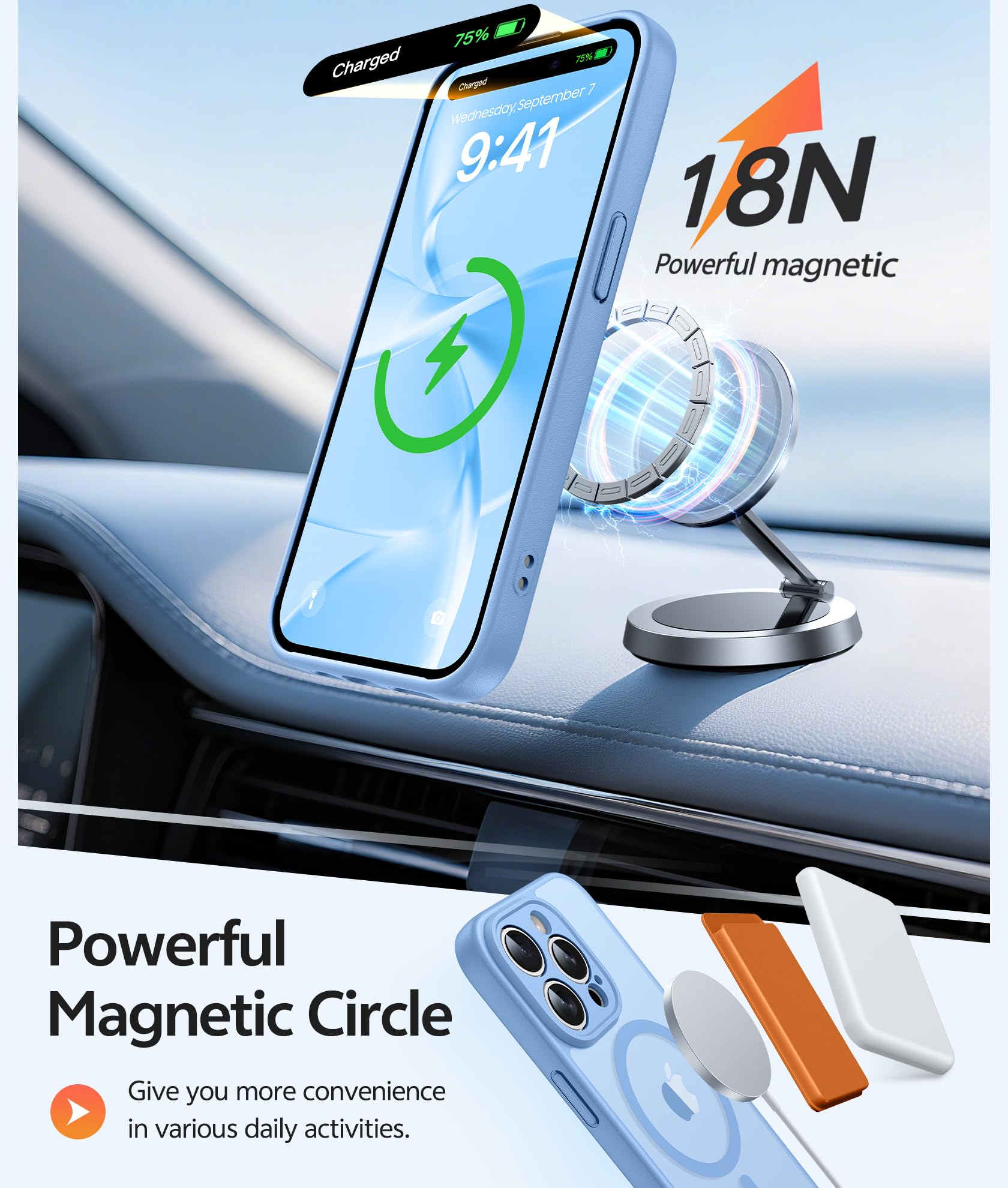Strong Magnetic Charging: Fit for Magnetic chargers and other Wireless chargers. This iPhone 15 Pro Max Case has built-in 38 super N52 magnets. Its magnetic attraction reaches 2400 gf, which is almost 7X stronger than ordinary, therefore it won't fall off no matter how it shakes when you are charging. Aligns perfectly with wireless power bank, wallets, car mounts and wireless charging stand
