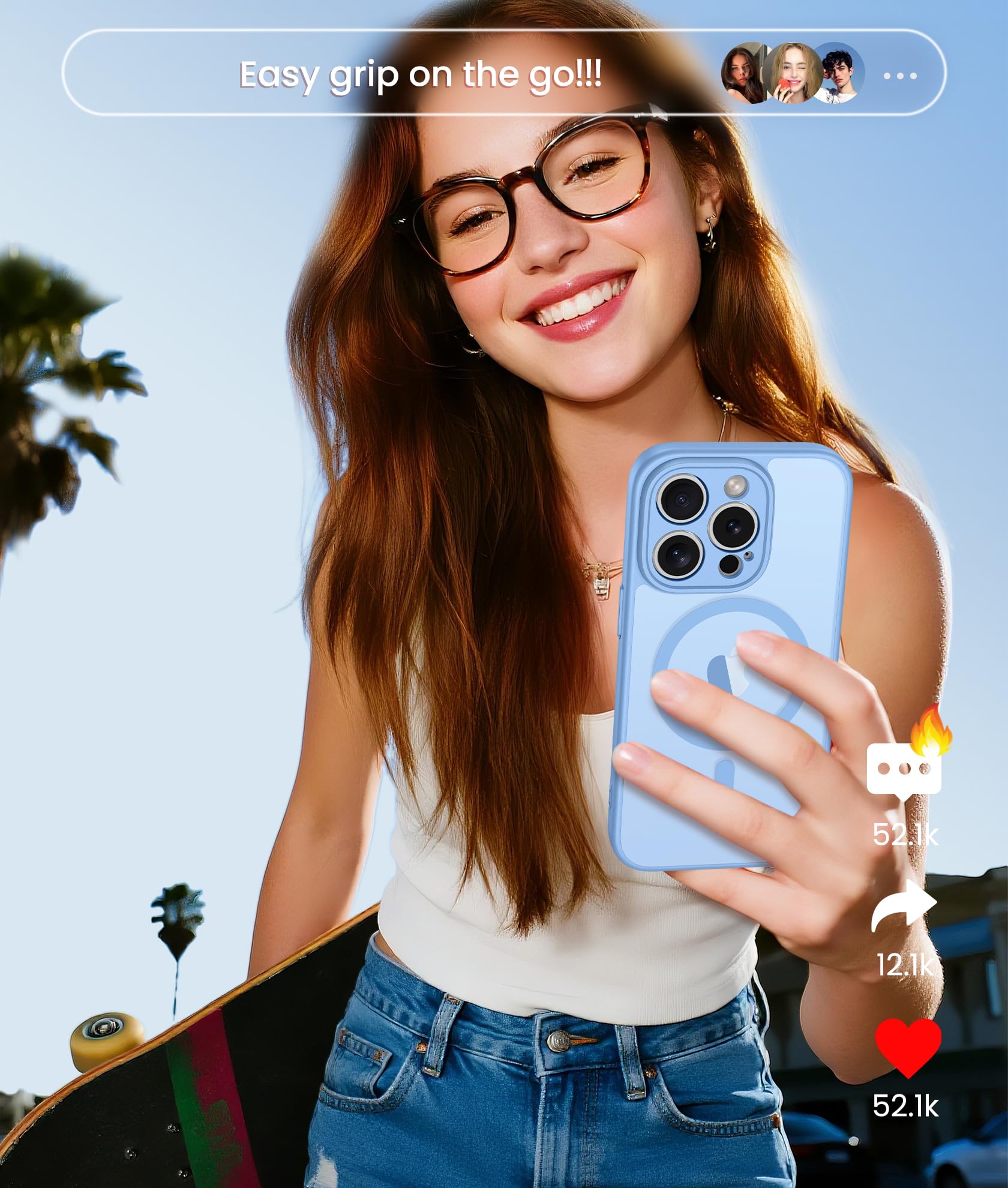 14FT Military Grade Drop Protection: Our Phone Case iPhone 15 Pro Max backplane is made with rigid polycarbonate and flexible shockproof TPU bumpers around the edge and features 4 built-in corner Airbags to absorb impact, which can prevent your Phone from accidental drops, bumps, and scratches