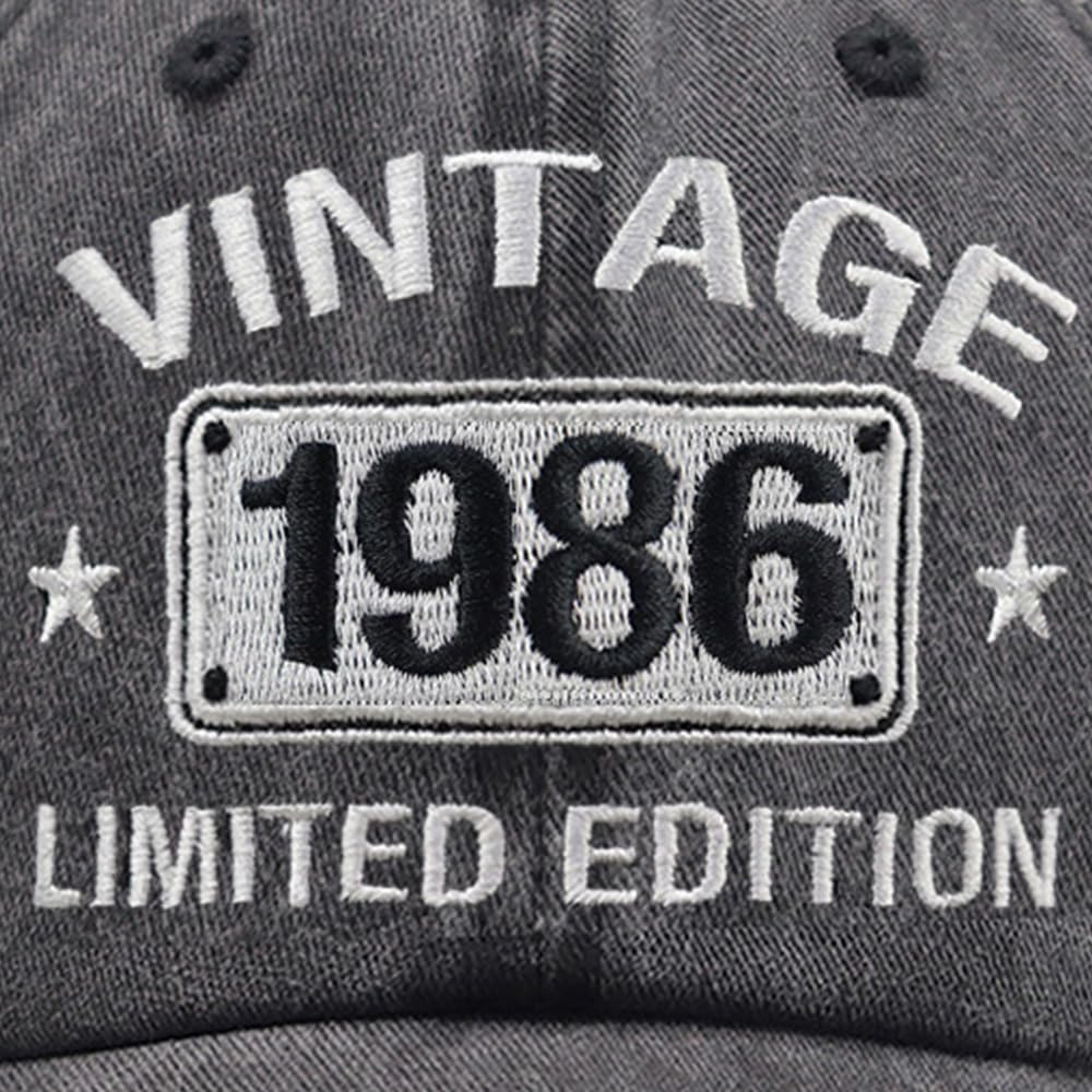 Vintage 1986 Hat Premium Material: Embroidery " Vintage 1986 Limited Edition ", Logo on Front. Funny 1986 Birthday Caps 100 Percent Cotton Denim Fabric, Excellent Quanlity Soft Tactility. Vintage 1986 Baseball Cap The Inner Side Is Equipped with A Sweat Absorbing Belt to Absorb Moisture and Wick Away Moisture, Breathable Comfort, Lightweight and Dry.