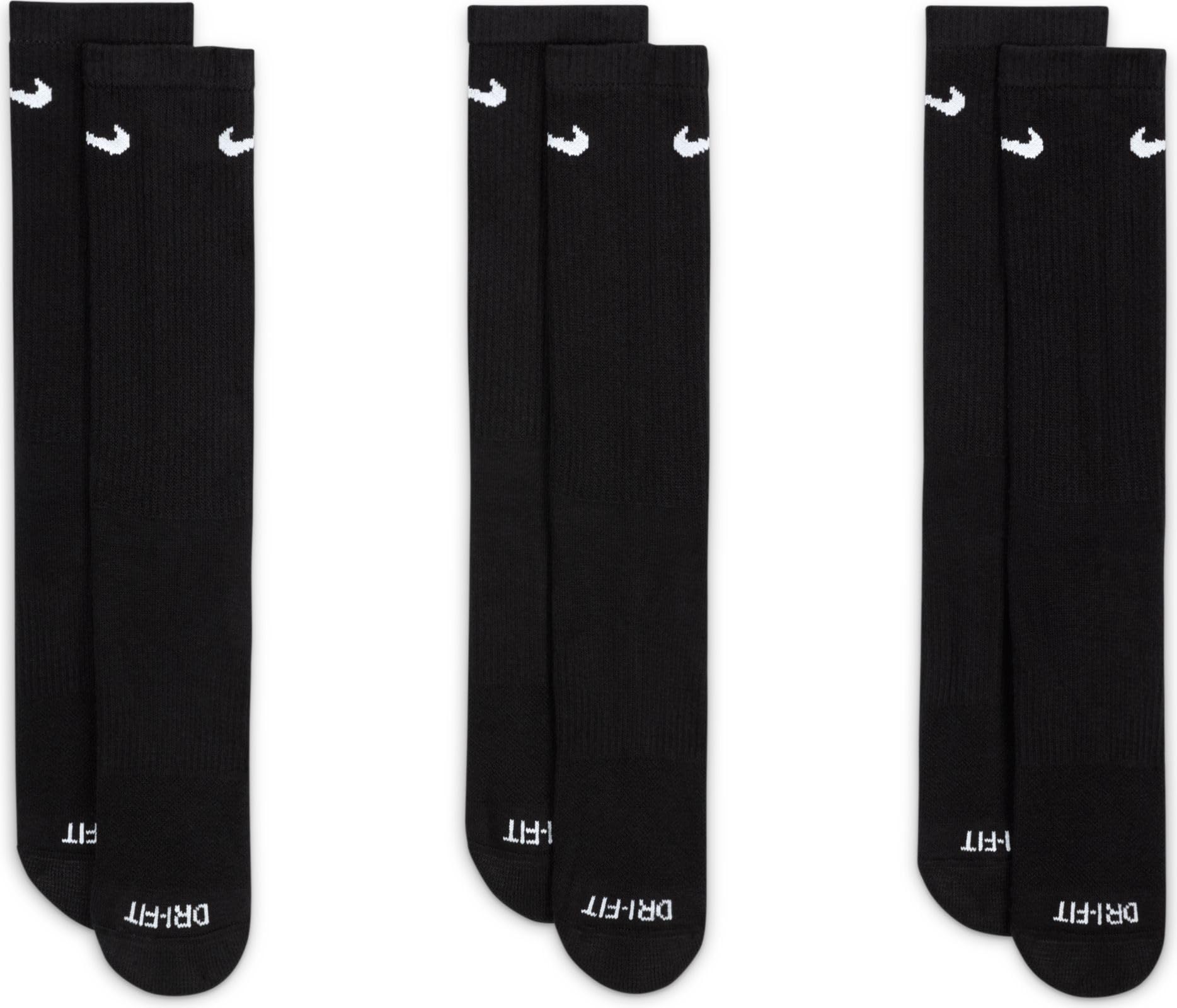 COMFORT AND SUPPORT; Power through your workout with the Nike Everyday Cushion Training Socks (6 Pair); The thick terry sole gives you extra comfort for footdrills and lifts while high-friction yarns in the footbed reduce slippage; Dri-FIT technology helps you stay dry and comfortable