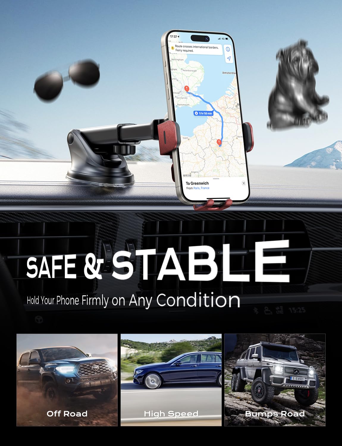 【Intelligent Identification & Smart Charging】Experience effortless and safe driving with our phone car mount. It automatically clamps your phone when connected, providing convenience and enhanced safety. The charger's arms open with a simple touch on the 2 sides button. Plus, it intelligently powers off and protects your phone's battery when it's fully charged