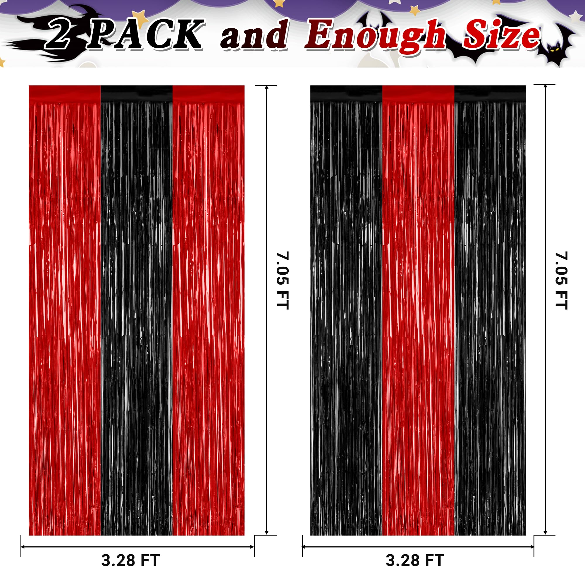 Design: These fringe curtains feature a color clash of black and red along with a metallic finish, creating a mysterious and slightly scary atmosphere.
