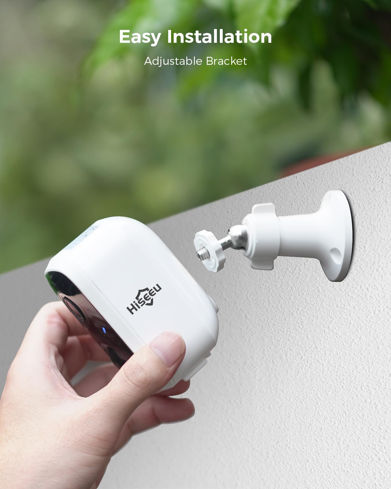 No Worries About Connection, upgrade hiseeu wireless security cameras support dual-band (2.4G Wi-Fi 4 and 5G Wi-Fi pro) adapts to your home's Wi-Fi strength for rock-solid coverage. Easy Install, just 5 minutes, drill 3 holes, adjust the bracket for suitable angle.