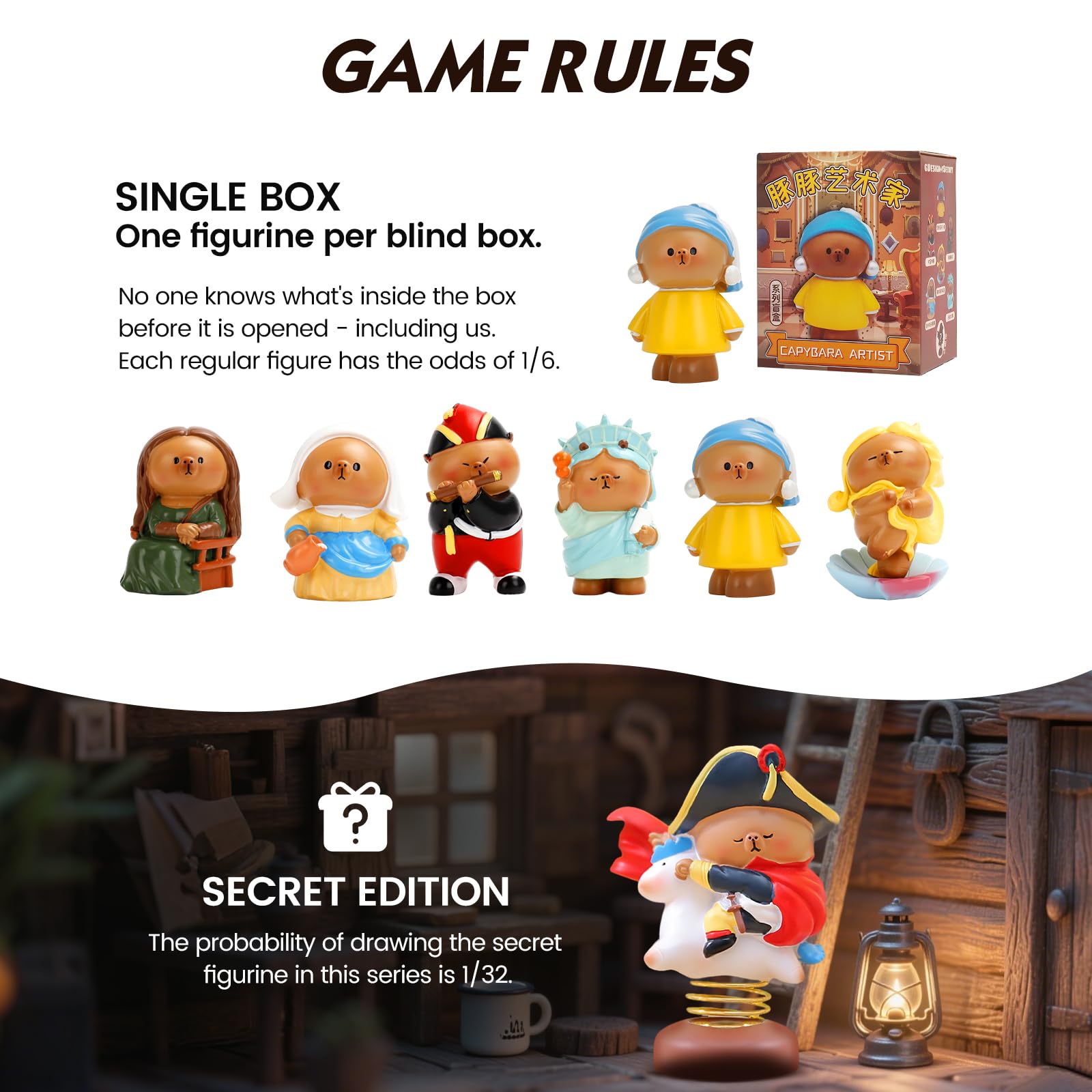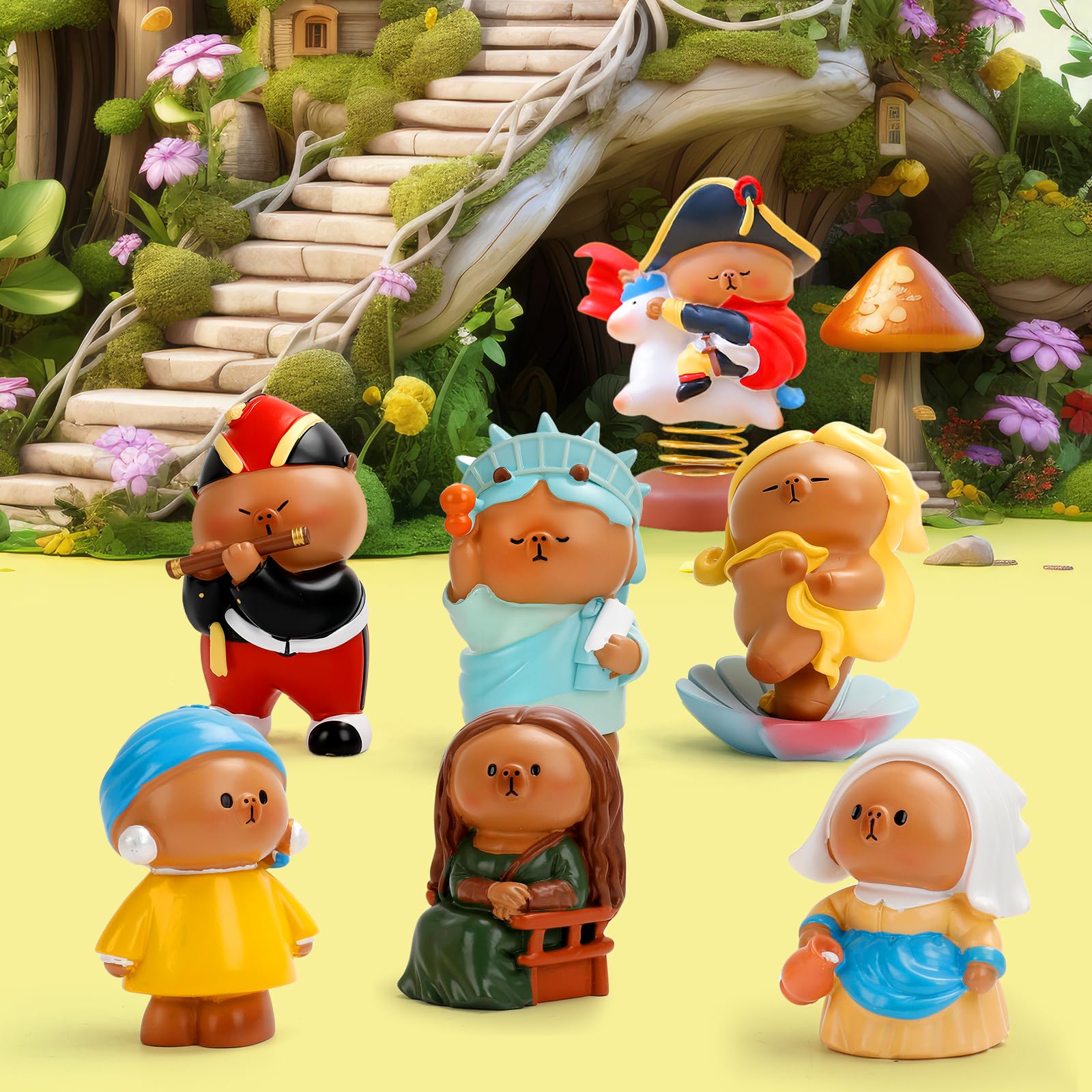 【COLLECTIBLE SERIES】: Each blind box contains one of seven art history-inspired capybara figures, bringing classic masterpieces to life in a whimsical style