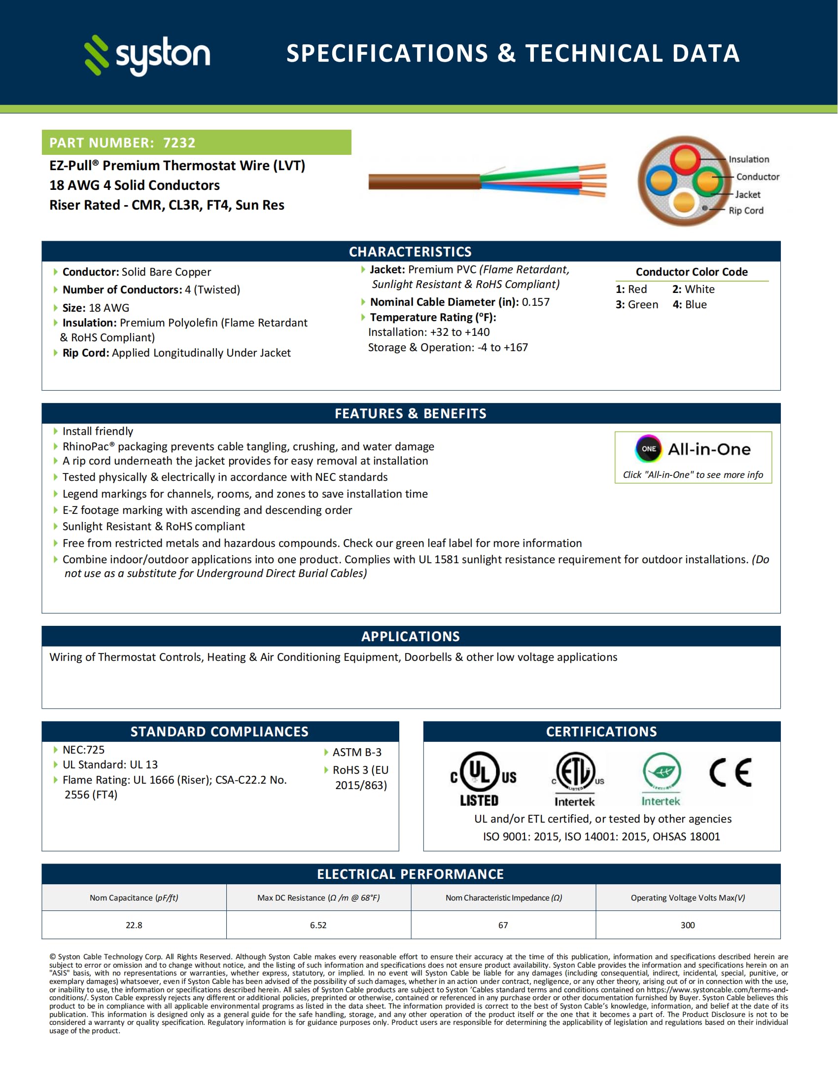 Pure Copper Conductors: Our thermostat cable is built with solid pure copper conductors, providing maximum conductivity and reliability to ensure that your systems run smoothly.