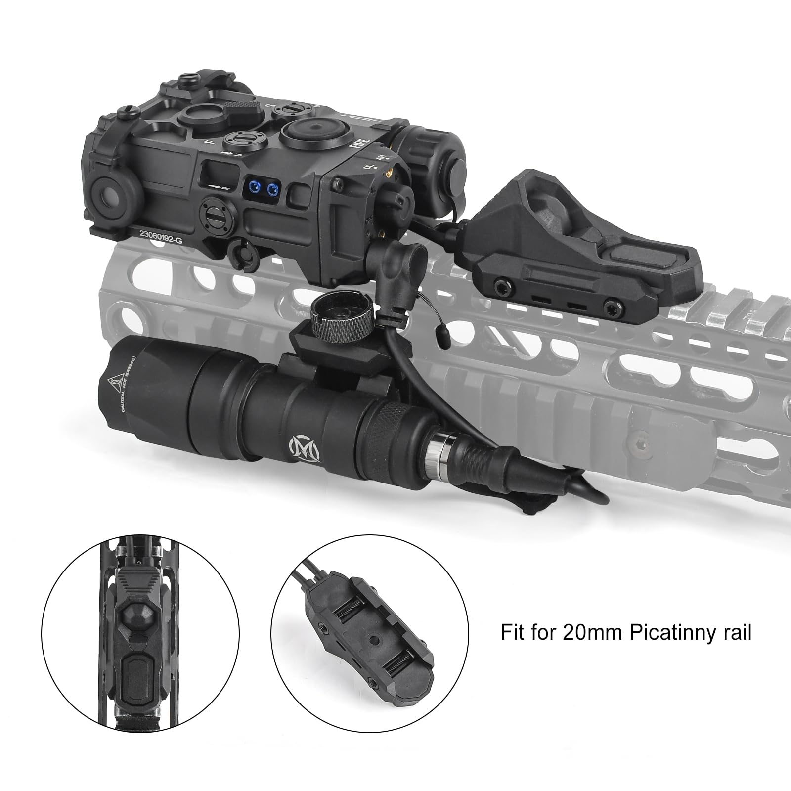 Fit for 3 kinds systems. According to the needs of tactical activities, you can install it on the 20mm Picatinny rail, or changing the accessories, it can also be installed on the mlok or keymod rail