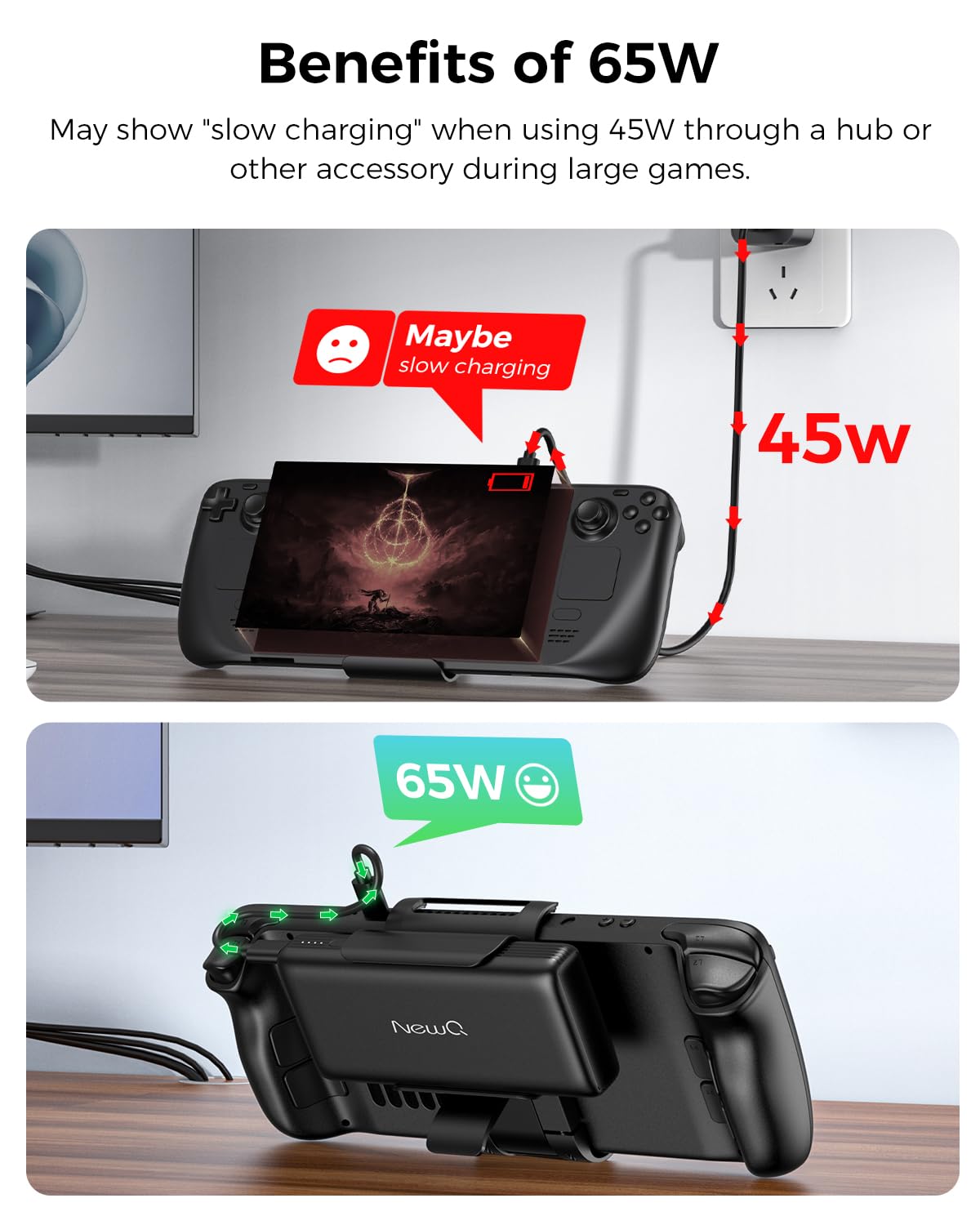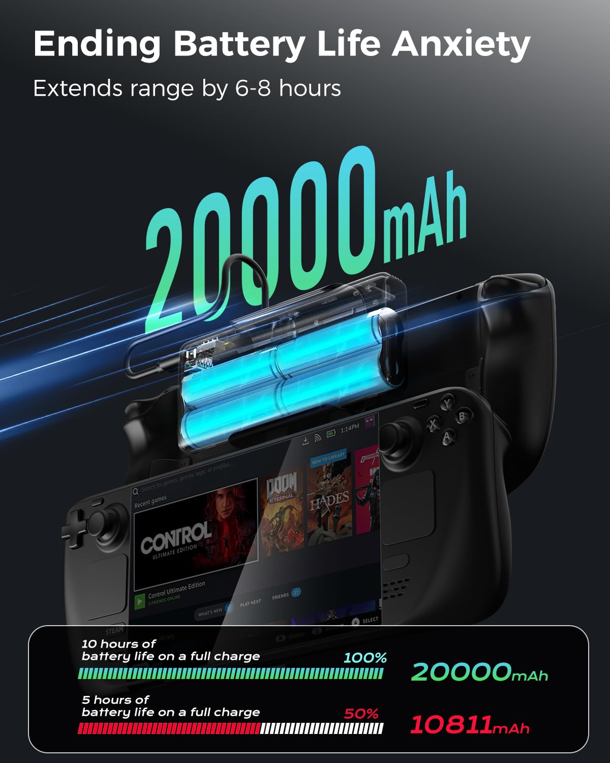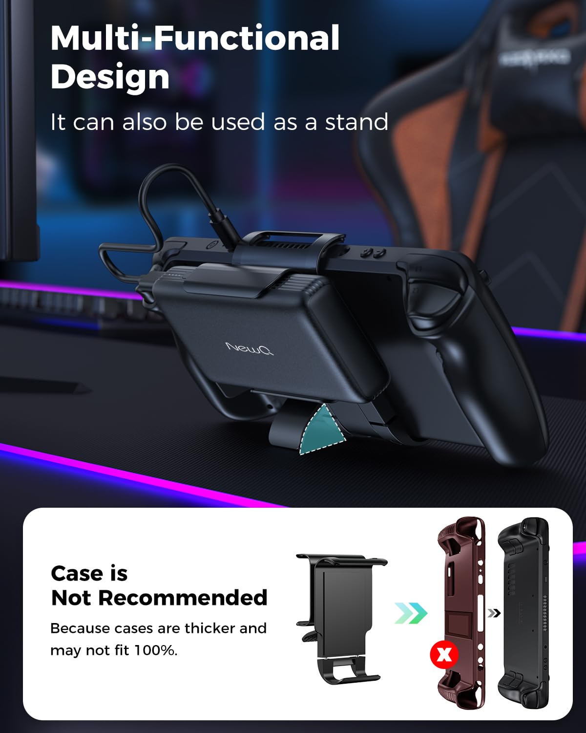 【Steam Deck Excellent Accessory】This external power bank is designed for steam deck. You can fix the power bank with components and there is a hidden bracket. Increase 2X steamdeck usage time when traveling or on the go, the hidden bracket makes it easy to use on your desktop in various environments such as airplanes and trains. (Because of the various sizes of case, it is not recommended to use with case for now, maybe we will optimize it later.)