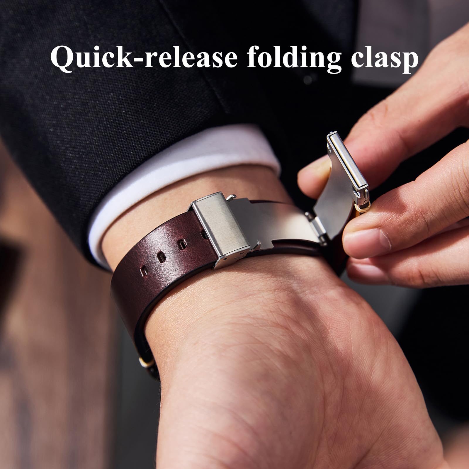 The stainless steel folding clasp is more convenient to use, saving you time when putting on and taking off the watch. The quick-release design eliminates the need for tools when changing the strap, making it faster to switch straps.