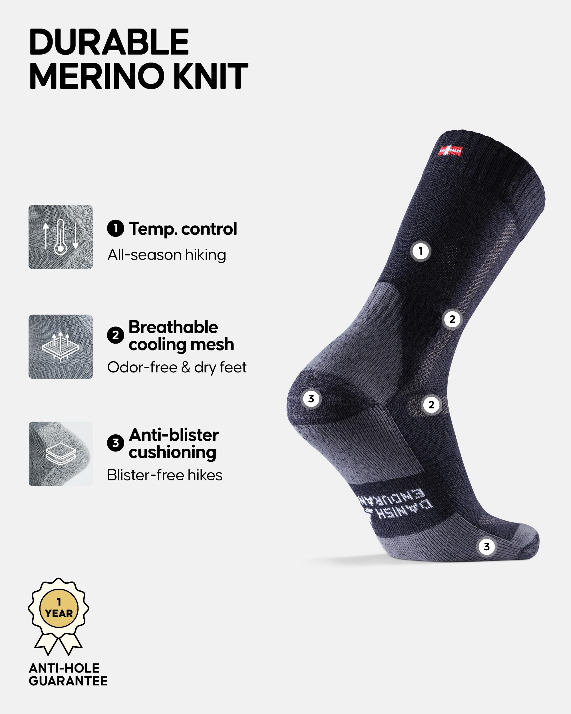 Anti-Hole Guarantee: Got a hole in your socks within the first year after purchase? We will send you a replacement for free. If you have any questions, our customer service is happy to help you