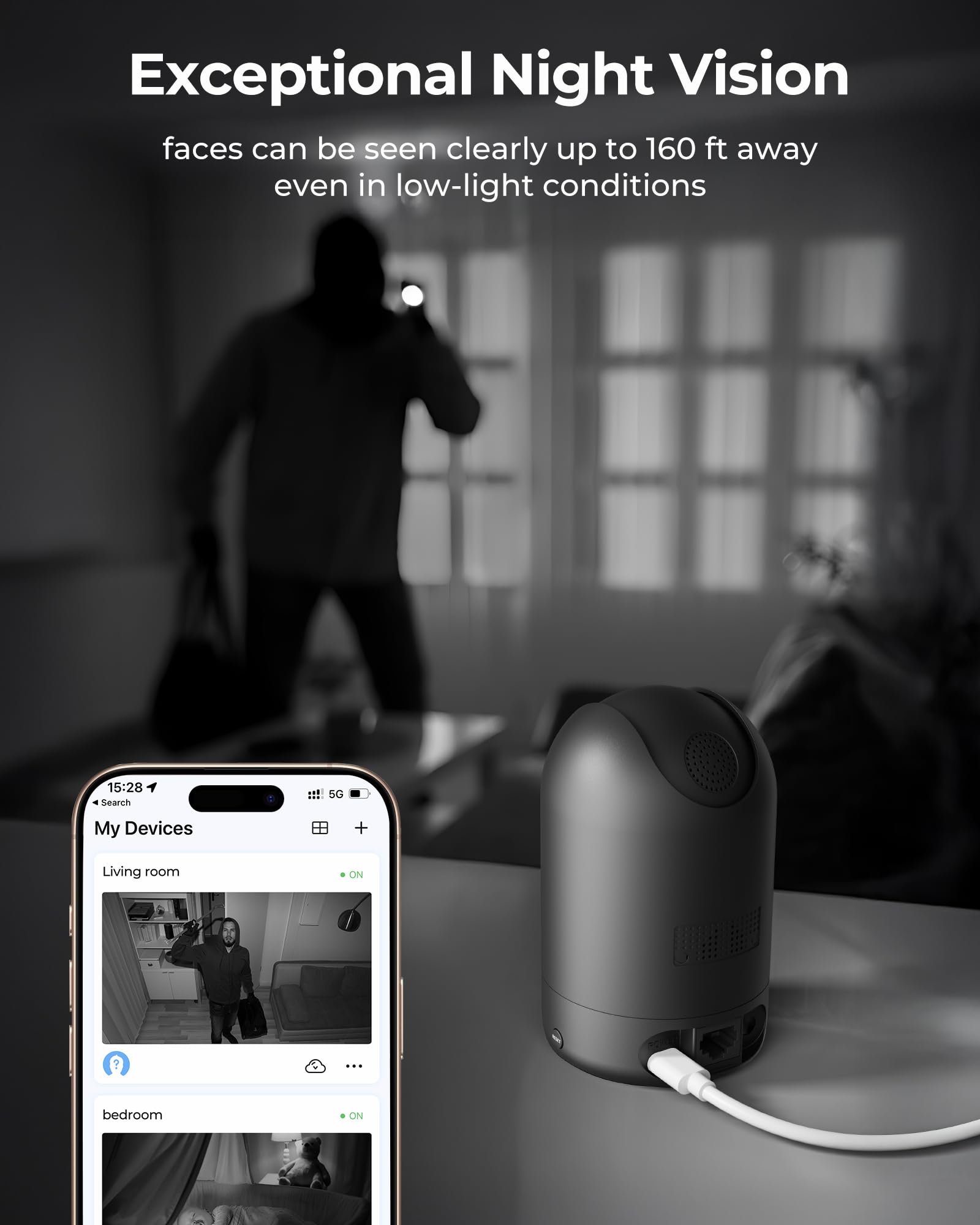4MP/2K Resolution Ultra HD Image Quality: Unlike 1080P oR 720P, 4MP/2K wifi home security camera can help offer more colorful & clearer details to you. Your baby/pet/families or stranger will be shown as you’re right in the place. 13 Powerful IR lights allows us to get clear views even in the dark.