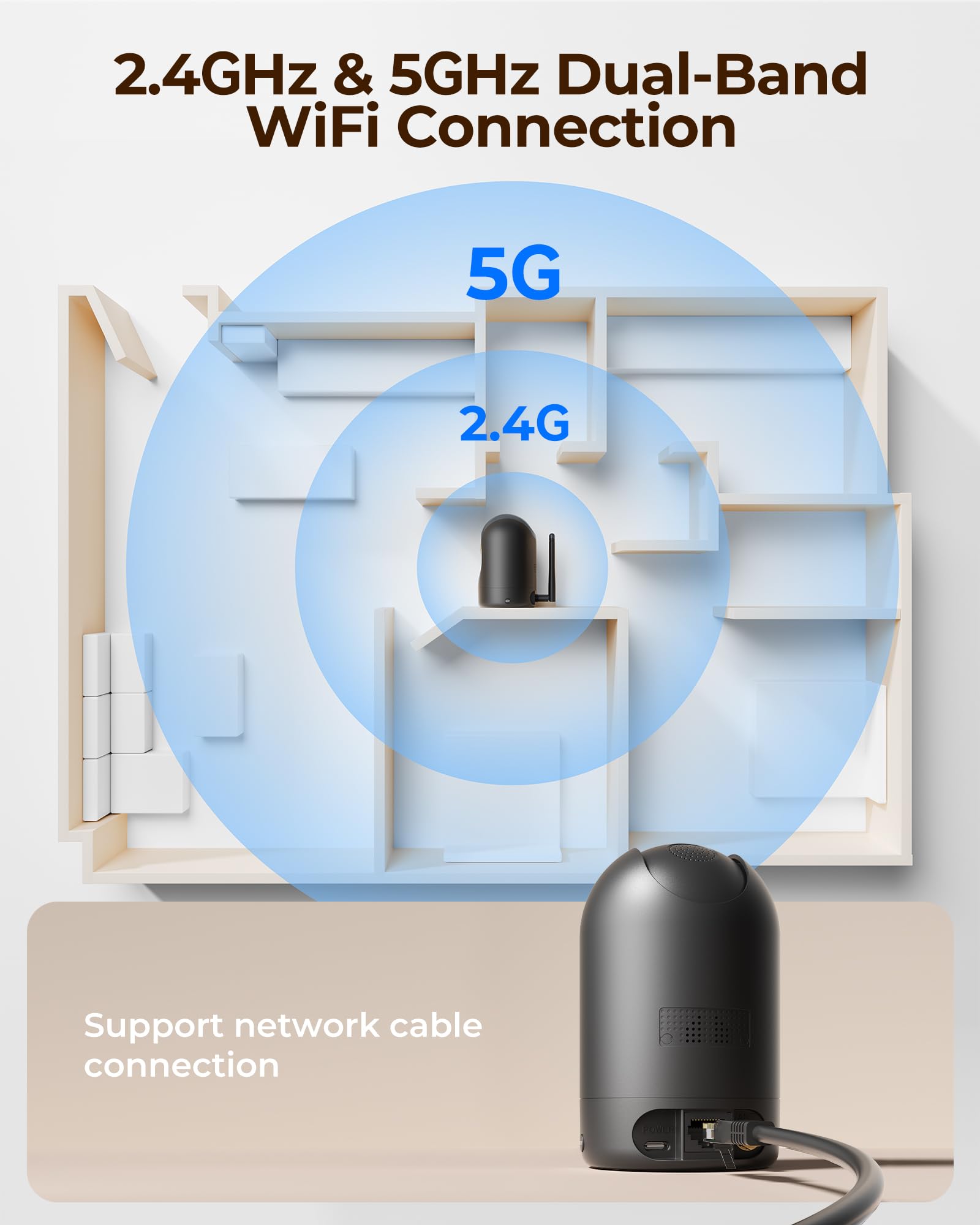 Dog Video Monitor:33ft night vision and 105˚ super wide angle lens(4mm) deliver 4MP FHD and smooth stream live video day and night.When you are busy working you can also watch your pets' movements and talk to them in real-time.One Button privacy protection mode is available to hide the lens down to protect your privacy.