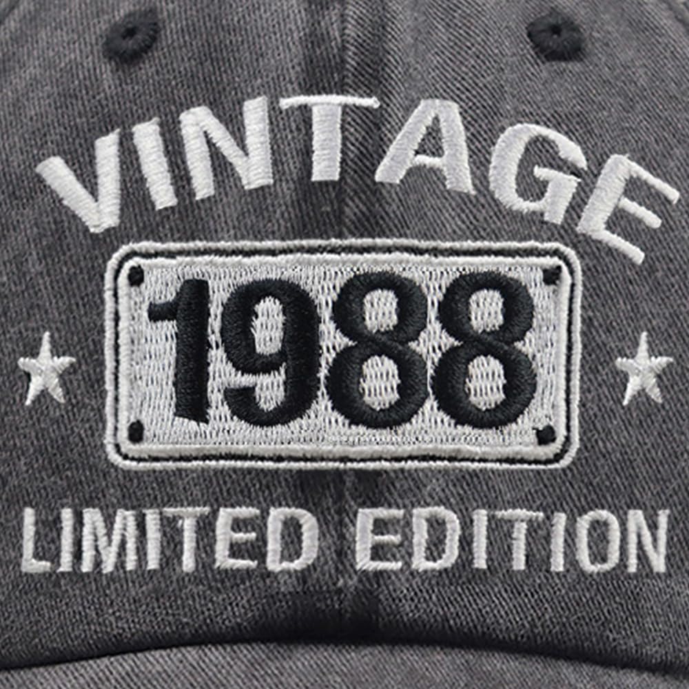Vintage 1988 Hat Premium Material: Embroidery " Vintage 1988 Limited Edition ", Logo on Front. Funny 1988 Birthday Caps 100 Percent Cotton Denim Fabric, Excellent Quanlity Soft Tactility. Vintage 1988 Baseball Cap The Inner Side Is Equipped with A Sweat Absorbing Belt to Absorb Moisture and Wick Away Moisture, Breathable Comfort, Lightweight and Dry.