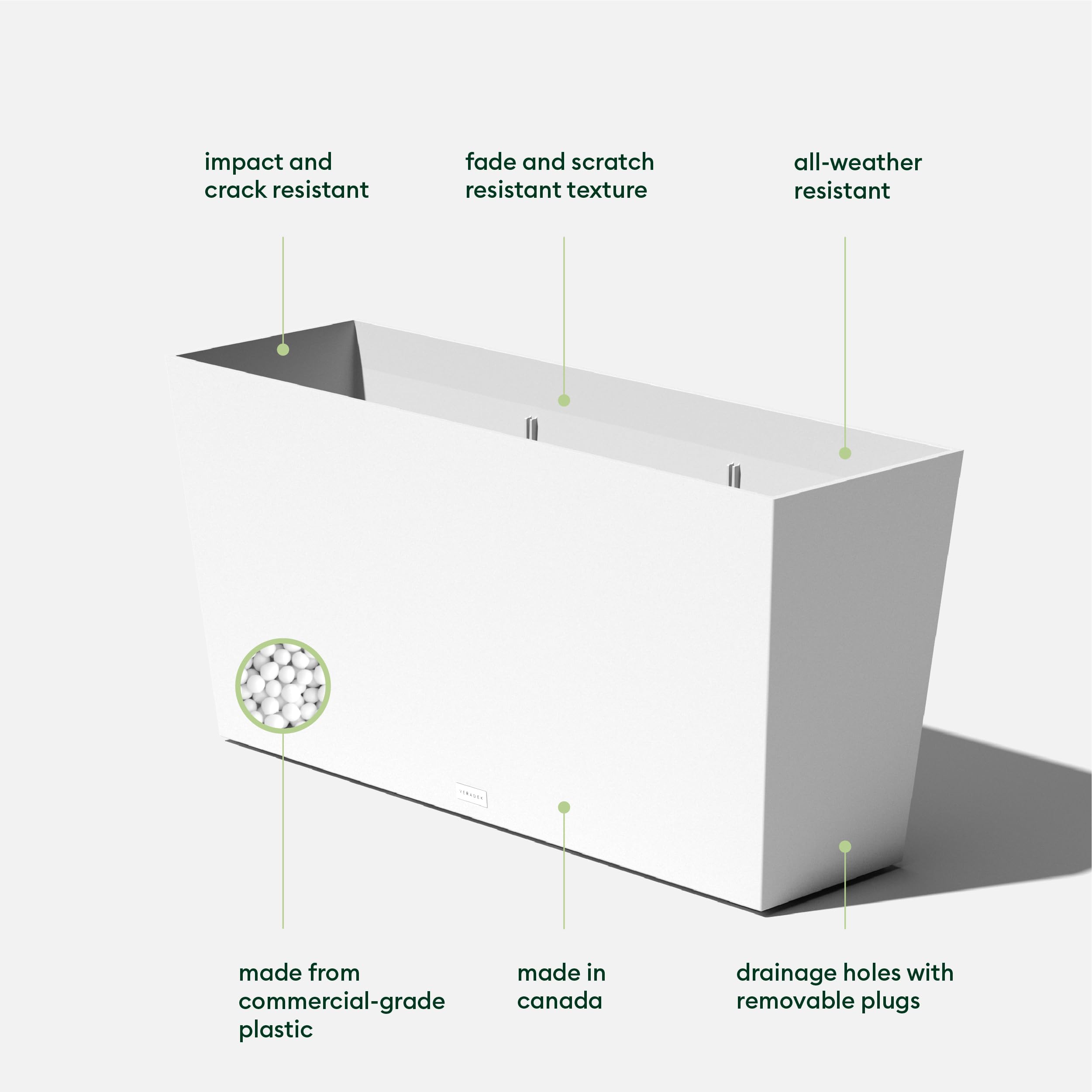 PROUDLY MADE IN CANADA - Designed and made in Canada, so you can rest assured that your Veradek rectangular planters will be of the highest quality and last all year round
