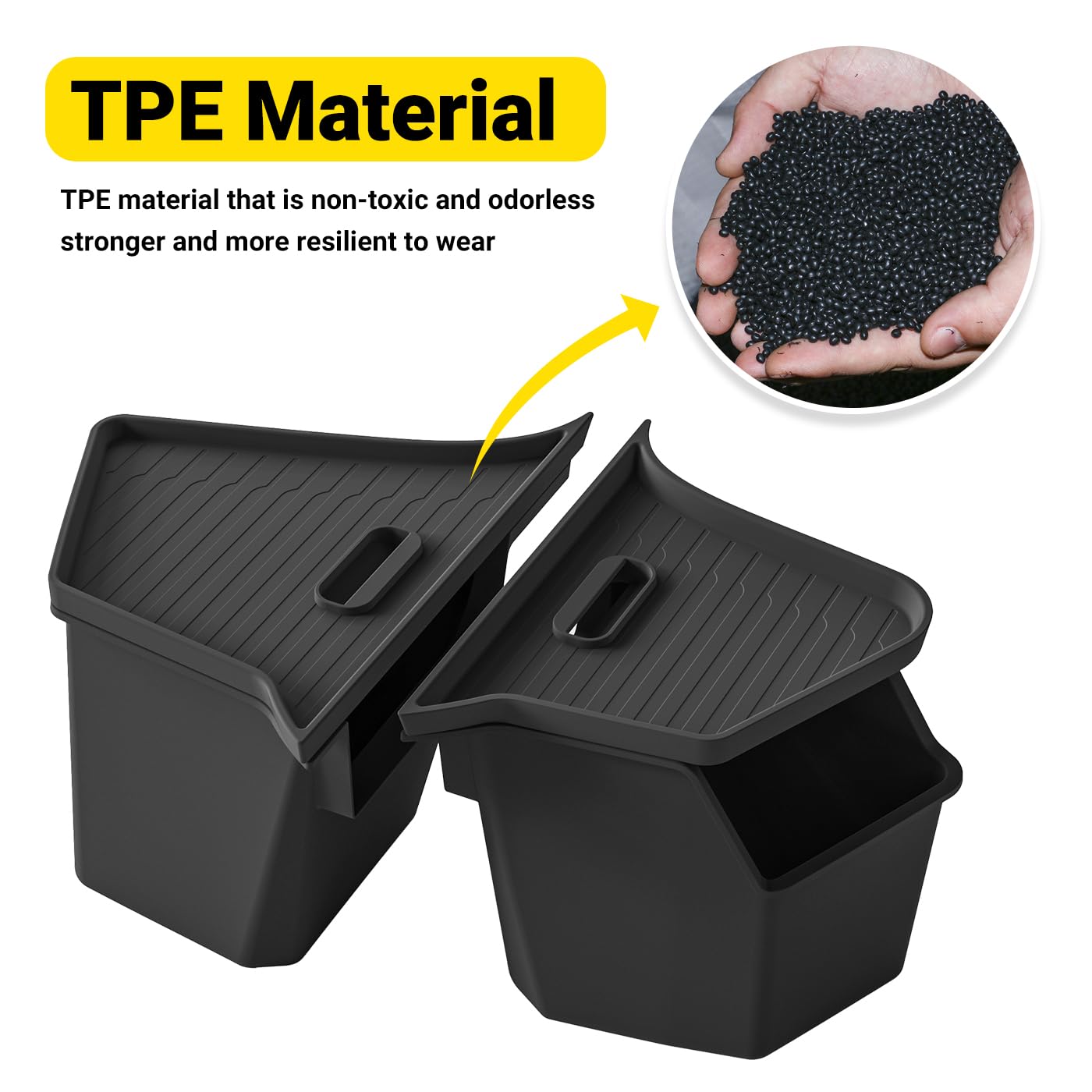 Perfect Trunk Storage Box: Our 2025 2026 model y rear storage bins can help you maximize the storage space and provide easy access to the items. It uses a lid made of TPE material, which has a great texture and prevents the items in the storage bin from slipping out.