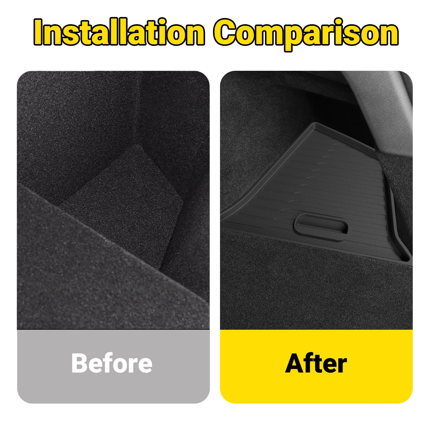 TPE Safety Material: The model y juniper trunk storage trays are made of environmentally friendly TPE material, which has almost no odor, safe and non-toxic. It can provide good waterproof function and provide comprehensive protection for your car.