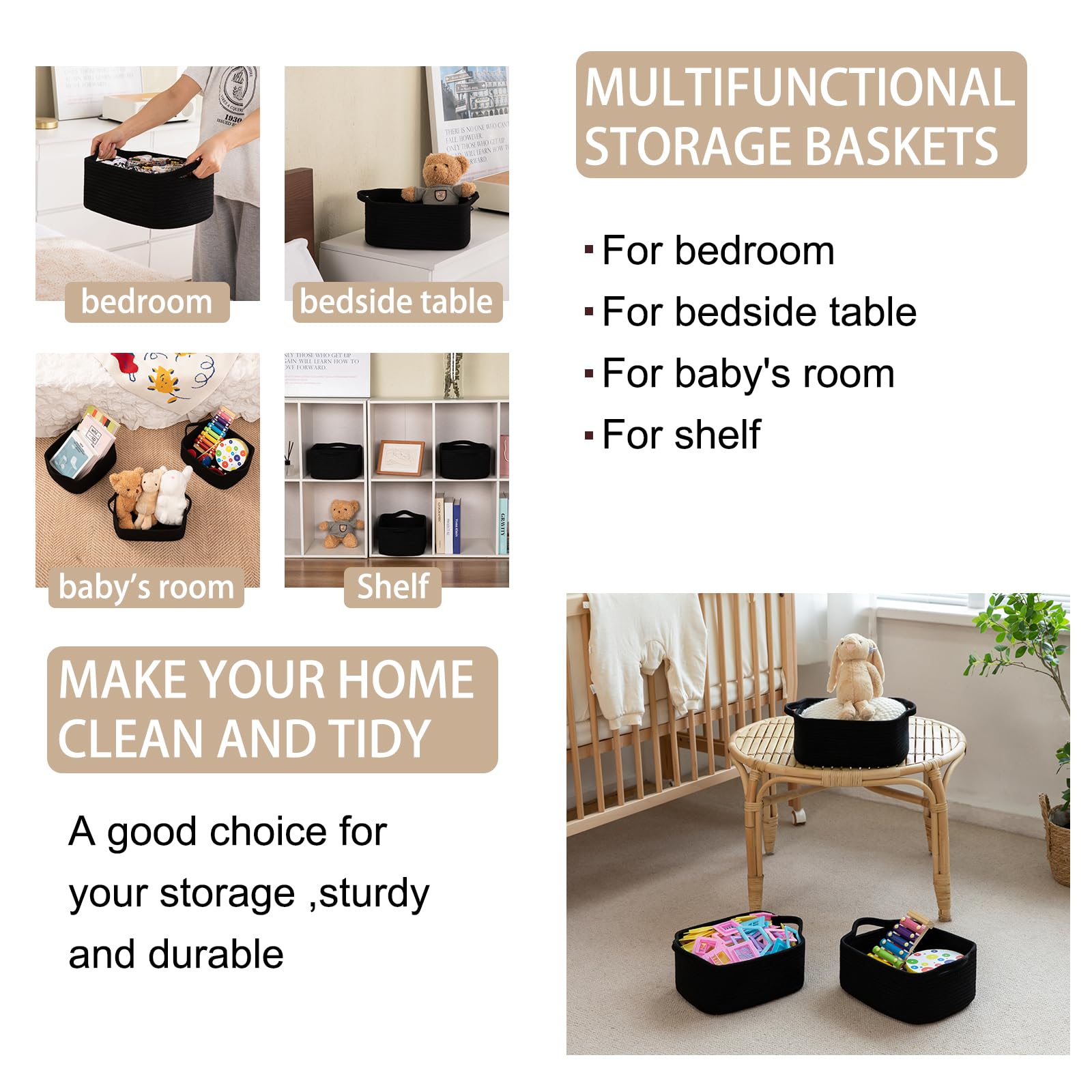 100% Cotton Rope Storage Baskets:OIAHOMY woven storage baskets are made of 100% natural cotton, chemical free and safe for kids and pets. It will not scratch your furniture and floor