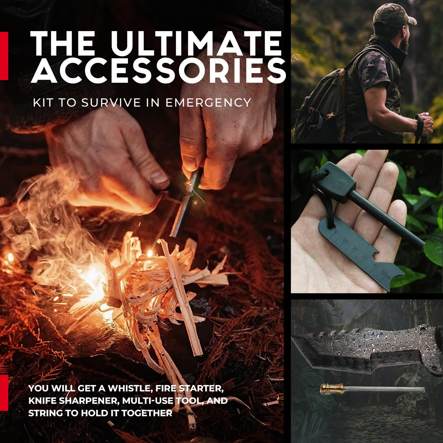 Precision Crafted Dimensions: Our fixed blade knife with sheath measures 10.5 inches overall, with a 5.5-inch blade and a 5-inch handle. The 3-5mm blade thickness ensures durability without compromising maneuverability.