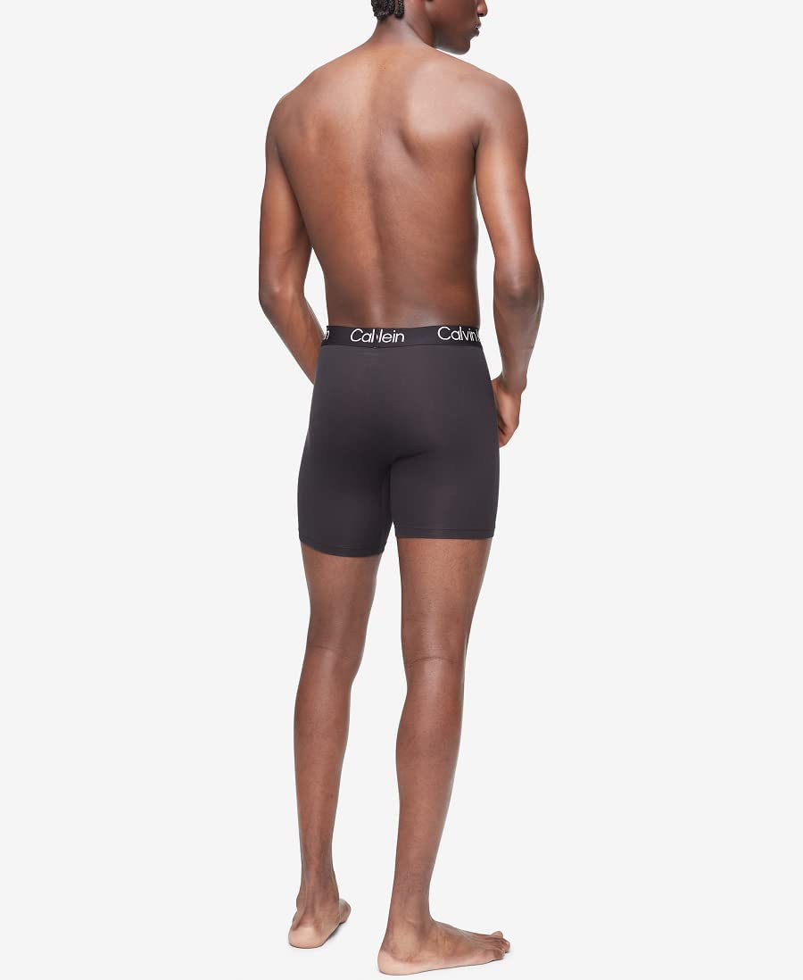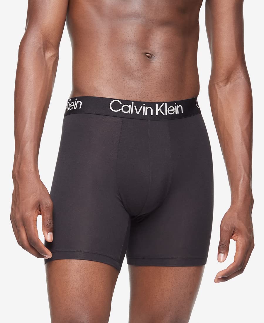 Description Eco-conscious with a luxurious feel, these Calvin Klein boxer briefs are crafted from breathable modal with long lasting fibers blended with stretch for dynamic comfort. Designed with a super soft recycled logo waistband, a sleek contoured pouch and a turnback hem for a clean finish. Comes in a 3-pack.